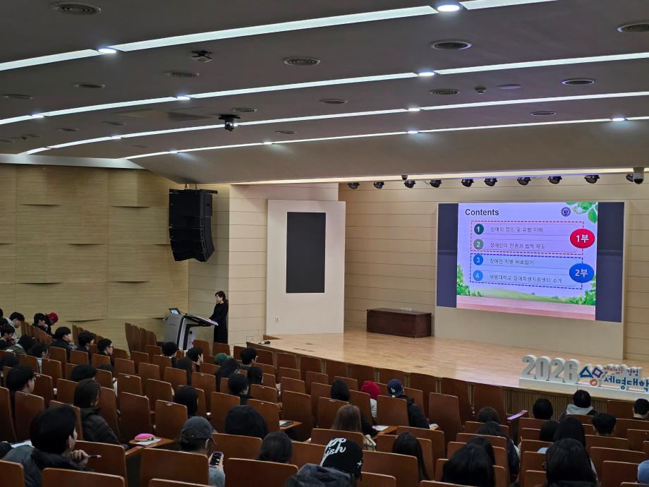 본문 시작 홈으로 커뮤니티 게시판 대학소개 교수소개 교양교육과정 교양교육 프로그램 커뮤니티 게시판 입학안내 홈페이지가이드 자료실 공지사항 자료실 학생 커뮤니티 취업정보 CHARM리더십특강 CHARM리더십특강 CHARM커뮤니케이션 제천문화탐방과 스토리텔링 CHARM인문학콘서트~2018 향토문화탐방~2018 특강 및 기타 행사 포토 갤러리 CHARM리더십특강 페이스북 트위터 프린트 2026-1학기 CHARM리더십특강 1주차 강의 교양대학 211 2026-03-05 2026-1학기 CHARM리더십특강 1주차 강의 정진화교수님_장애와 장애인에 대한 올바른 이해 목록 이전2025-2학기 CHARM리더십특강 보강주차 강의 다음 2026-1학기 CHARM리더십특강 2주차 강의 담당부서 : 교양대학 담당자 : - 연락처 : 043-649-7065 최종수정일 : 2024-10-26 만족도조사 만족도 조사 이 페이지에서 제공하는 정보에 대하여 만족하시나요? 매우만족 만족 보통 불만족 매우불만족