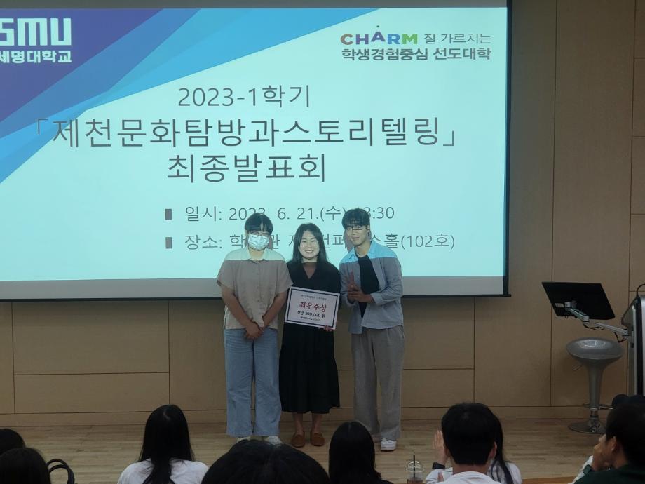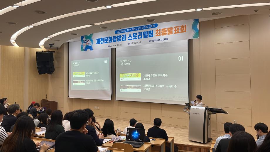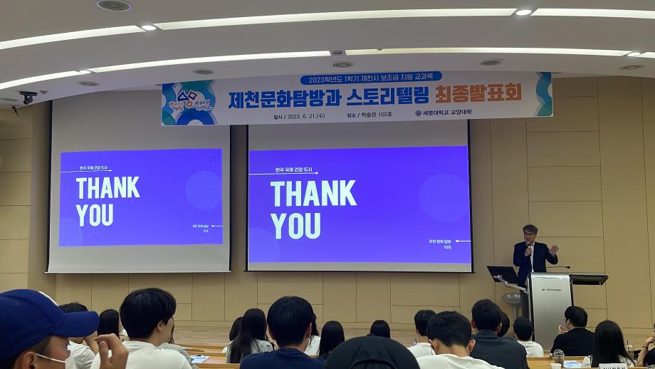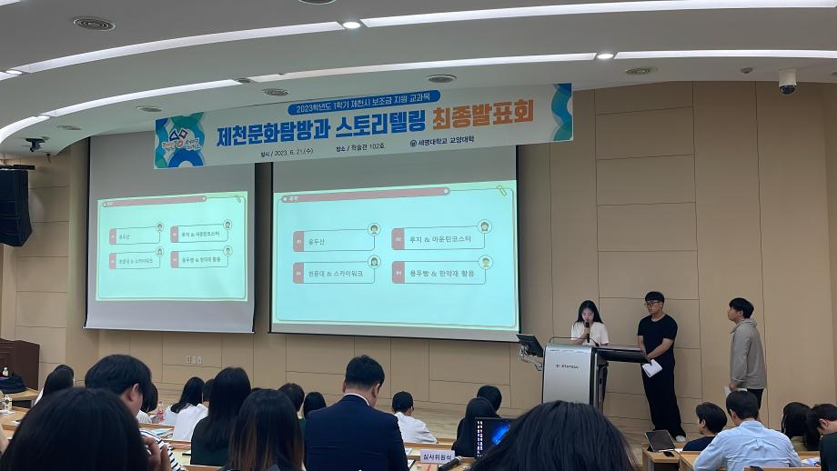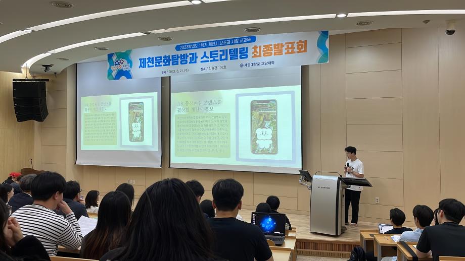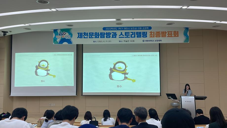 본문 시작 홈으로 커뮤니티 게시판 대학소개 교수소개 교양교육과정 교양교육 프로그램 커뮤니티 게시판 입학안내 홈페이지가이드 자료실 공지사항 자료실 학생 커뮤니티 취업정보 제천문화탐방과 스토리텔링 CHARM리더십특강 CHARM커뮤니케이션 제천문화탐방과 스토리텔링 CHARM인문학콘서트~2018 향토문화탐방~2018 특강 및 기타 행사 포토 갤러리 제천문화탐방과 스토리텔링 페이스북 트위터 프린트 2023-1학기 제천문화탐방과 스토리텔링 프레젠테이션 발표 및 수여식 교양대학 2984 2023-06-21 2023-1학기 제천문화탐방과 스토리텔링 프레젠테이션 발표 및 수여식 2023년 6월 21일(수) 13:30~15:30 / 학술관 102호 목록 이전2023-1학기 제천문화탐방과스토리텔링 4차 탐방 다음 2023-2 제천문화탐방과스토리텔링 1주차 강의 담당부서 : 교양대학 담당자 : - 연락처 : 043-649-7065 최종수정일 : 2024-10-26 만족도조사 만족도 조사 이 페이지에서 제공하는 정보에 대하여 만족하시나요? 매우만족 만족 보통 불만족 매우불만족