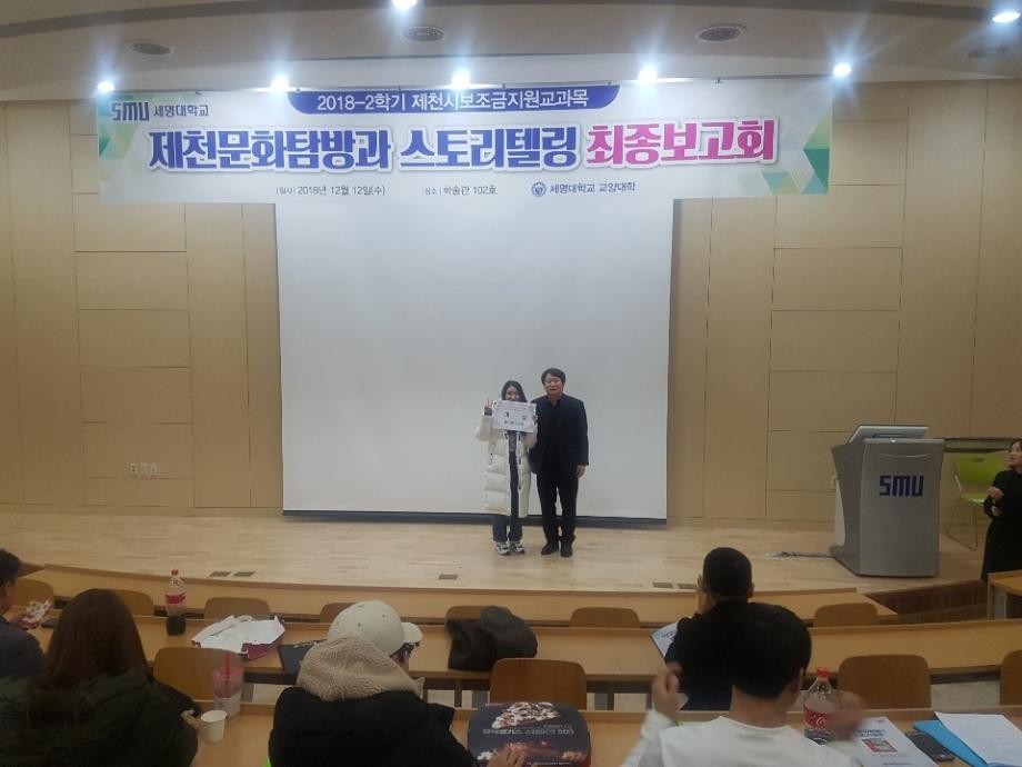본문 시작 홈으로 커뮤니티 게시판 대학소개 교수소개 교양교육과정 교양교육 프로그램 커뮤니티 게시판 입학안내 홈페이지가이드 자료실 공지사항 자료실 학생 커뮤니티 취업정보 제천문화탐방과 스토리텔링 CHARM리더십특강 CHARM커뮤니케이션 제천문화탐방과 스토리텔링 CHARM인문학콘서트~2018 향토문화탐방~2018 특강 및 기타 행사 포토 갤러리 제천문화탐방과 스토리텔링 페이스북 트위터 프린트 2018-2학기 제천문화탐방과 스토리텔링 프레젠테이션 발표 및 수여식 교양대학 6468 2018-12-12 2018-2학기 제천문화탐방과 스토리텔링 프레젠테이션 발표 및 수여식 목록 이전2018-2학기 제천문화탐방과 스토리텔링 (12월 05일) -한방 바이오 엑스포 공원 다음 2019-1학기 제천문화탐방과 스토리텔링 (4월 03일) -제천 중앙시장, 교동 민화마을 담당부서 : 교양대학 담당자 : - 연락처 : 043-649-7065 최종수정일 : 2024-10-26 만족도조사 만족도 조사 이 페이지에서 제공하는 정보에 대하여 만족하시나요? 매우만족 만족 보통 불만족 매우불만족