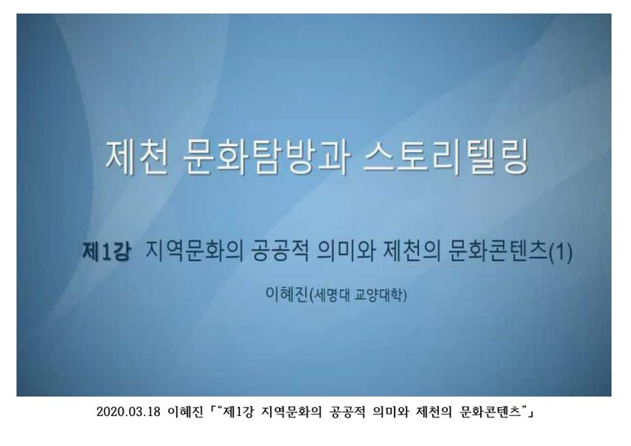 본문 시작 홈으로 커뮤니티 게시판 대학소개 교수소개 교양교육과정 교양교육 프로그램 커뮤니티 게시판 입학안내 홈페이지가이드 자료실 공지사항 자료실 학생 커뮤니티 취업정보 제천문화탐방과 스토리텔링 CHARM리더십특강 CHARM커뮤니케이션 제천문화탐방과 스토리텔링 CHARM인문학콘서트~2018 향토문화탐방~2018 특강 및 기타 행사 포토 갤러리 제천문화탐방과 스토리텔링 페이스북 트위터 프린트 2020-1학기 제천문화탐방과 스토리테링 1-6주차 강의 교양대학 8585 2020-06-05 1주차 - 3/18 이혜진 "오리엔테이션&지역문화의 공공적 의미와 제천의 문화콘텐츠" 2주차 - 3/25 이혜진 "지역문화콘텐츠와 스토리텔링" 3주차 - 4/1 이혜진 "제천의 여행문화와 레저" 4주차 - 4/8 최자운 "제천의 축제와 지역문화" 5주차 - 제21대 국회의원 선거일 6주차 - 4/22 이혜진 "문화콘텐츠 기획의 전략" 목록 이전2019-2학기 제천문화탐방과 스토리텔링 프레젠테이션 발표 및 수여식 다음 2020-1학기 제천문화탐방과 스토리테링 7-11주차 강의 담당부서 : 교양대학 담당자 : - 연락처 : 043-649-7065 최종수정일 : 2024-10-26 만족도조사 만족도 조사 이 페이지에서 제공하는 정보에 대하여 만족하시나요? 매우만족 만족 보통 불만족 매우불만족