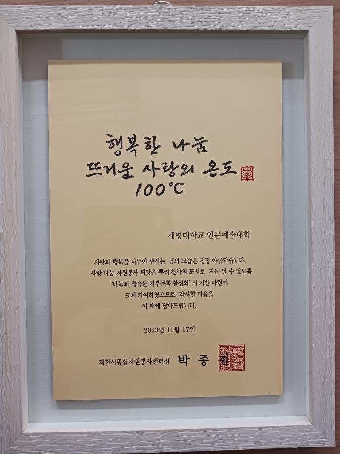 본문 시작 홈으로 커뮤니티 대학소개 학과소개 입학안내 커뮤니티 홈페이지가이드 사진 자료실 대학소식 학과소식 자료실 사진 자료실 동영상 자료실 사진 자료실 페이스북 트위터 프린트 인문예술대학 제천시자원봉사센터장 감사패 수상 인문예술대학 2813 2023-11-16 인문예술대학 제천시자원봉사센터장 감사패 수상 목록 이전모듈형 교육과정 위원회 3차 회의 다음 콘텐츠스쿨 2023 창작물 쇼케이스 및 2024 비전 발표회 성황리 종료 담당부서 : 인문예술대학 담당자 : - 연락처 : 043-649-7402 최종수정일 : 2024-10-26 만족도조사 만족도 조사 이 페이지에서 제공하는 정보에 대하여 만족하시나요? 매우만족 만족 보통 불만족 매우불만족