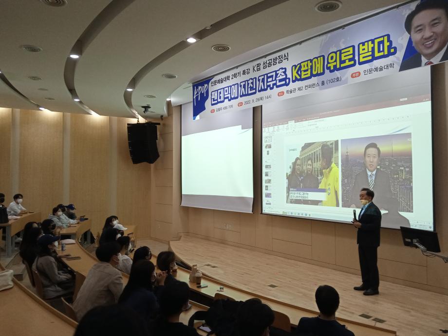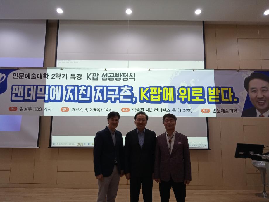 본문 시작 홈으로 커뮤니티 대학소개 학과소개 입학안내 커뮤니티 홈페이지가이드 사진 자료실 대학소식 학과소식 자료실 사진 자료실 동영상 자료실 사진 자료실 페이스북 트위터 프린트 인문예술대학 2학기 특강 (KBS 김철우 기자) 인문예술대학 3306 2022-10-04 KBS김철우 기자의 "펜데믹에 지친 지구촌, K-POP에 위로받다" 인문예술대학에서 주관하는 2학기 특강이 9월 29일(목) 오후 2시 제 2컨퍼런스홀에 있었다 목록 이전2학기 운영위원회 및 5차 입시 대책회의 다음 2022년 인문예술대학 학술세미나 담당부서 : 인문예술대학 담당자 : - 연락처 : 043-649-7402 최종수정일 : 2024-10-26 만족도조사 만족도 조사 이 페이지에서 제공하는 정보에 대하여 만족하시나요? 매우만족 만족 보통 불만족 매우불만족