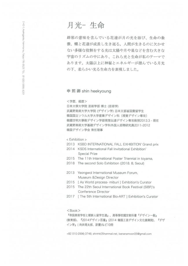 본문 시작 홈으로 커뮤니티 대학소개 학과소개 입학안내 커뮤니티 홈페이지가이드 사진 자료실 대학소식 학과소식 자료실 사진 자료실 동영상 자료실 사진 자료실 페이스북 트위터 프린트 [융합디자인학부] 시각디자인 전공 신희경 교수 일본 닛본대학 지원 갤러리에서 전시회 개최 인문예술대학 7388 2018-04-27 융합디자인학부 시각디자인 전공 신희경 교수가 일본 닛본대학에서 지원을 받아 갤러리에서 전시회를 개최하였습니다. 일시 : 2018. 04. 23 - 2018. 05. 12 시간 : 10 : 00 ~ 18 : 00 장소 : 2-42-1, Asahigaoka, Nerima-ku, Tokyo 176-8525 전화번호 : 81-(0)3-5995-8201 목록 이전[인문예술대학 주최] 4월 3일 정은성CEO 명사특강 다음 제1회 교수와 학생이 함께하는 예술무대 담당부서 : 인문예술대학 담당자 : - 연락처 : 043-649-7402 최종수정일 : 2024-10-26 만족도조사 만족도 조사 이 페이지에서 제공하는 정보에 대하여 만족하시나요? 매우만족 만족 보통 불만족 매우불만족