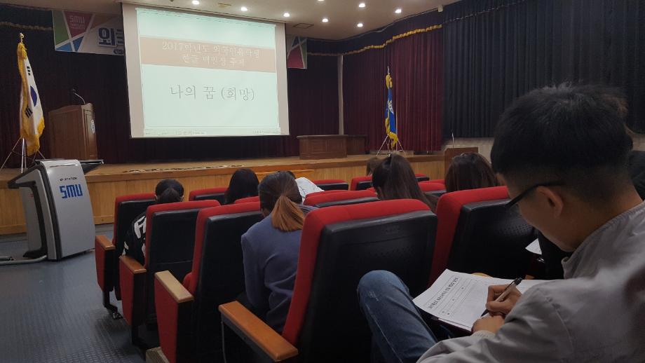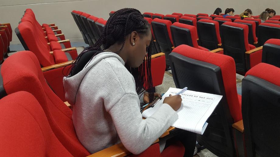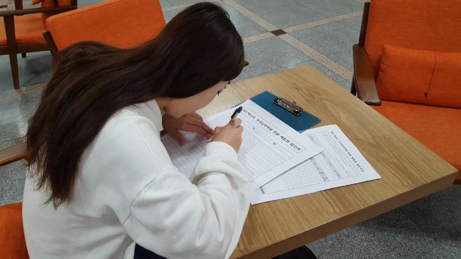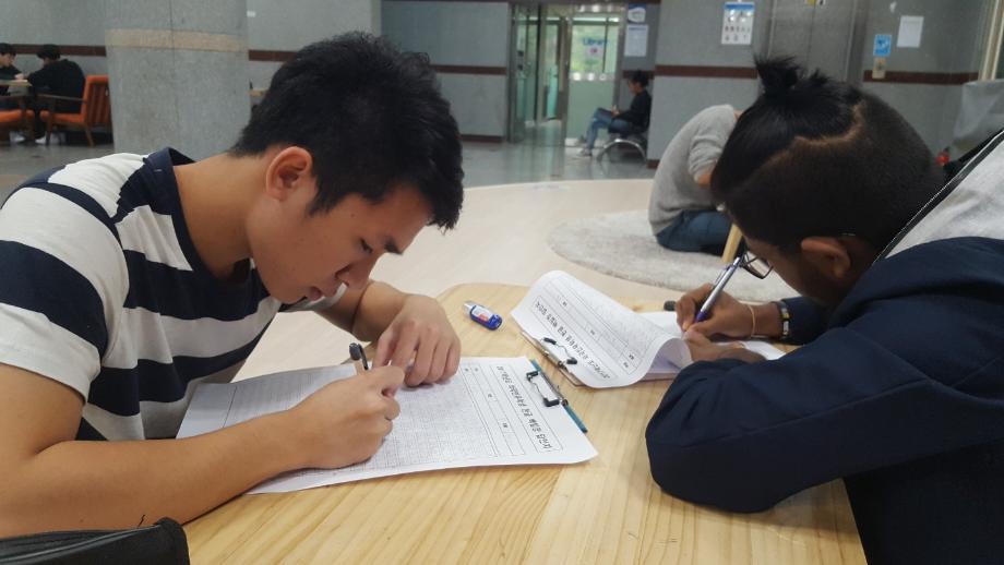 본문 시작 외국인유학생 백일장 개최 국제교육원 5456 2017-10-13 외국인 유학생들을 대상으로 백일장을 개최했습니다. 학생들은 민송도서관 내에서 자유롭게 글을 쓰며 자신의 생각을 키워나갔습니다. 국제교육원에서는 이에 따른 시상식도 진행했습니다. 목록 이전2017 외국인 유학생 채용박람회 다음 외국인 유학생 안동하회마을 문화체험 담당부서 : 국제교육원 담당자 : - 연락처 : 043-649-1185 최종수정일 : 2024-10-26 만족도조사 만족도 조사 이 페이지에서 제공하는 정보에 대하여 만족하시나요? 매우만족 만족 보통 불만족 매우불만족