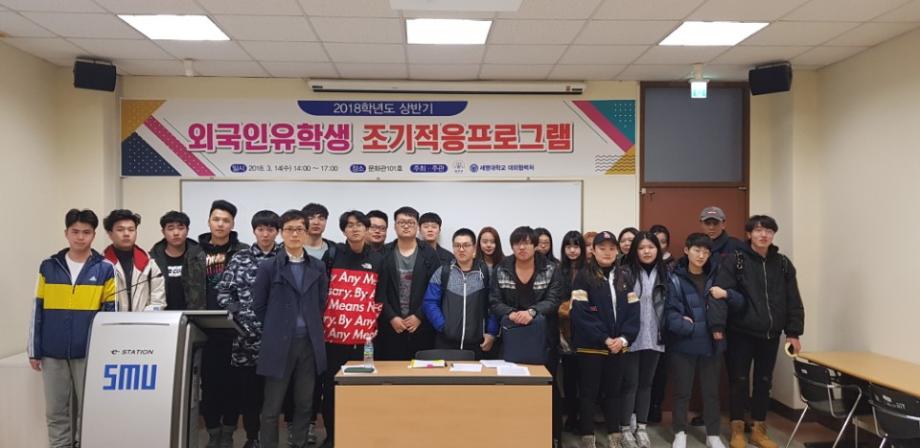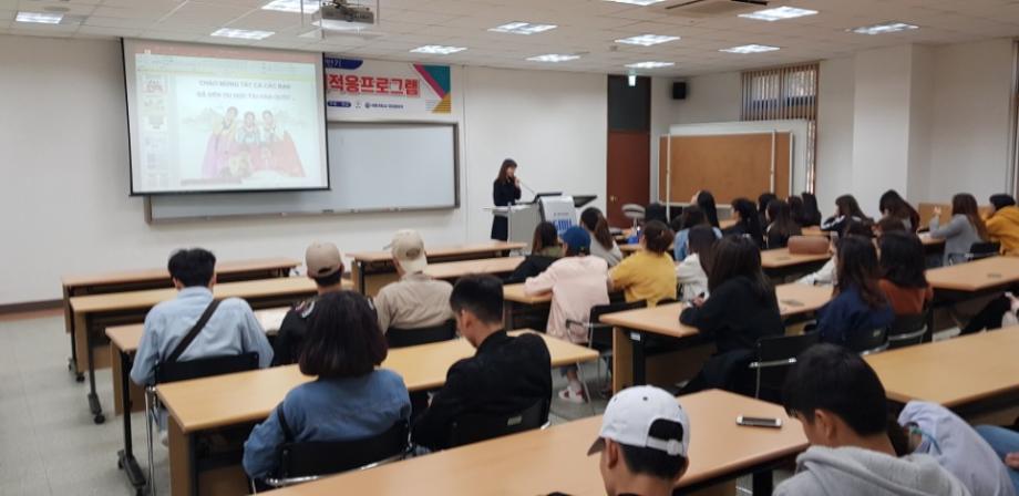 본문 시작 2018-1 외국인 유학생 조기적응 프로그램 국제교육원 6003 2018-03-14 03월 14일 법무부에서 주관하는 입국 초기의 외국인에게 필요한 정보를 제공하는 조기적응 프로그램을 진행하였습니다. 본 교육에서는 필수적인 생활정보, 법률/제도 등 을 알려주어 보다 편한 한국 생활을 영위할 수 있도록 도움을 주는데 목적이 있습니다. 목록 이전2018 봄학기 한국어 연수과정 개강식 다음 2018-1 외국인 유학생 간담회 담당부서 : 국제교육원 담당자 : - 연락처 : 043-649-1185 최종수정일 : 2024-10-26 만족도조사 만족도 조사 이 페이지에서 제공하는 정보에 대하여 만족하시나요? 매우만족 만족 보통 불만족 매우불만족