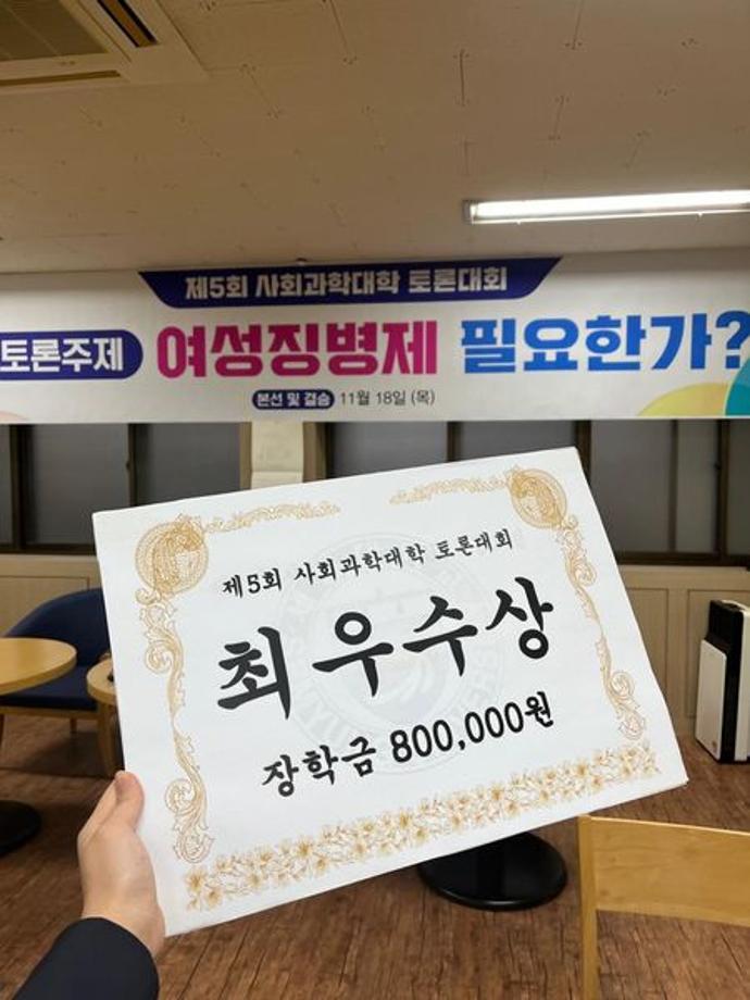 지난 11월 18일 진행되었던 [제5회 사회과학토론대회]에서 19학번 허한, 21학번 이호준 학생이 최우수상을 수상하였습니다!!