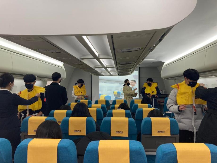세명대학교 항공서비스학과는 12월 2일, 항공서비스학과 모형비행실습실에서 충주상업고등학교 관광레저과 학생들을 대상으로 전환기 교육 프로그램을 진행했습니다.