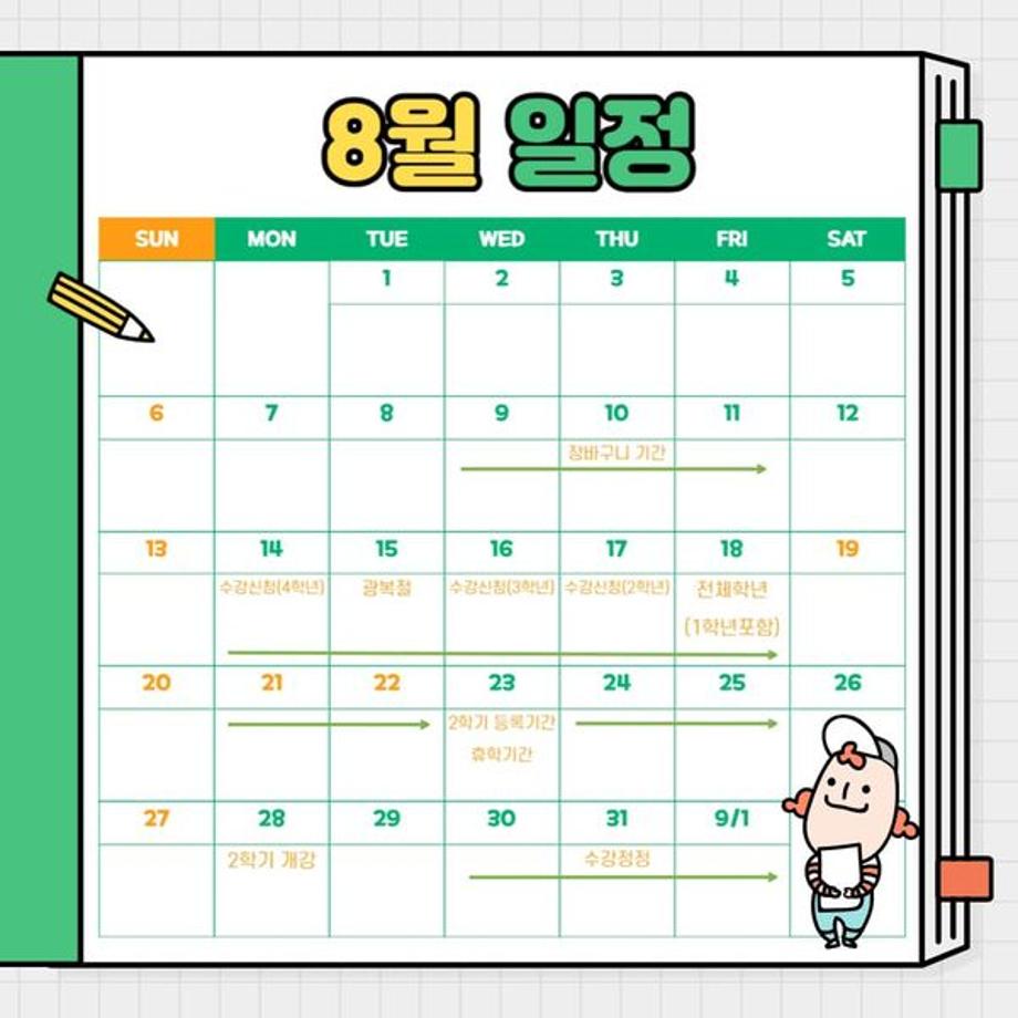 #세명대학교 #항공서비스학과 #세명대 #항공과 #푸르미르 #개강 #학사일정 #8월다이어리