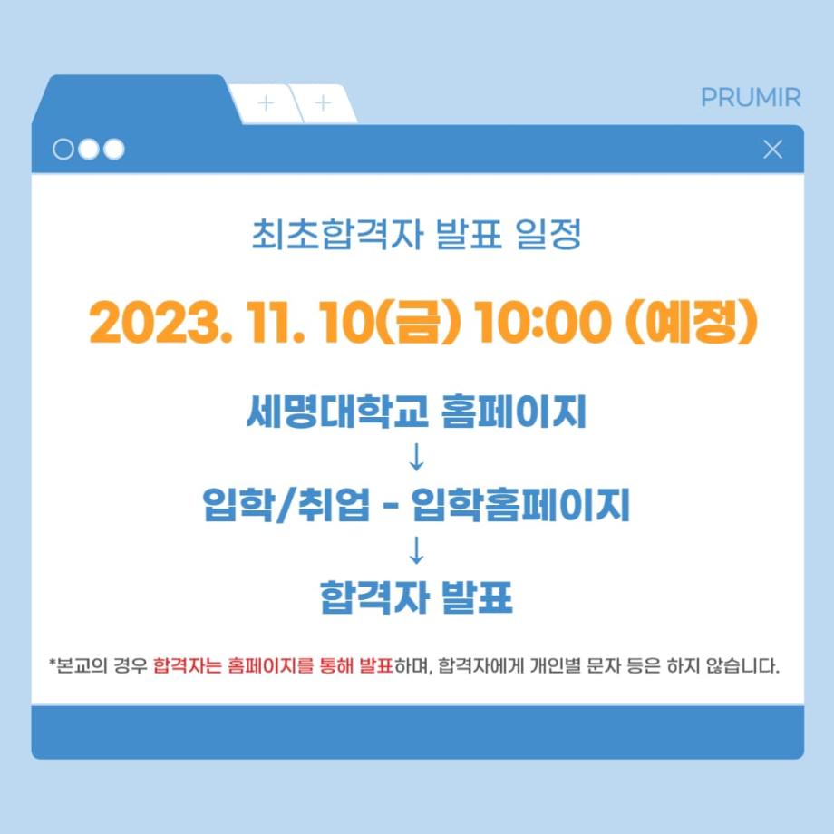 세명대학교 홈페이지에서 확인 가능하시며 합격자분들께는 ❗️개인적인 연락이 가지 않는다는 점❗️참고하시어 착오 없으시길 바랍니다 ◡̎
