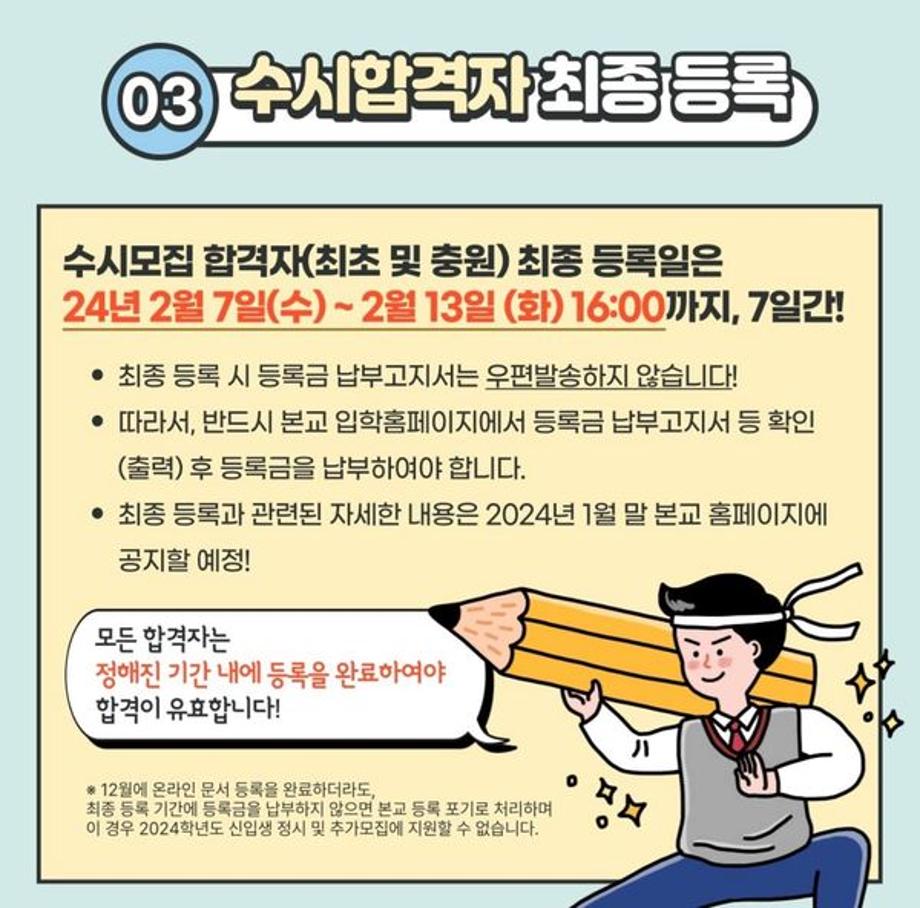 📣 수시모집 합격자(최초 및 충원) 최종 등록일