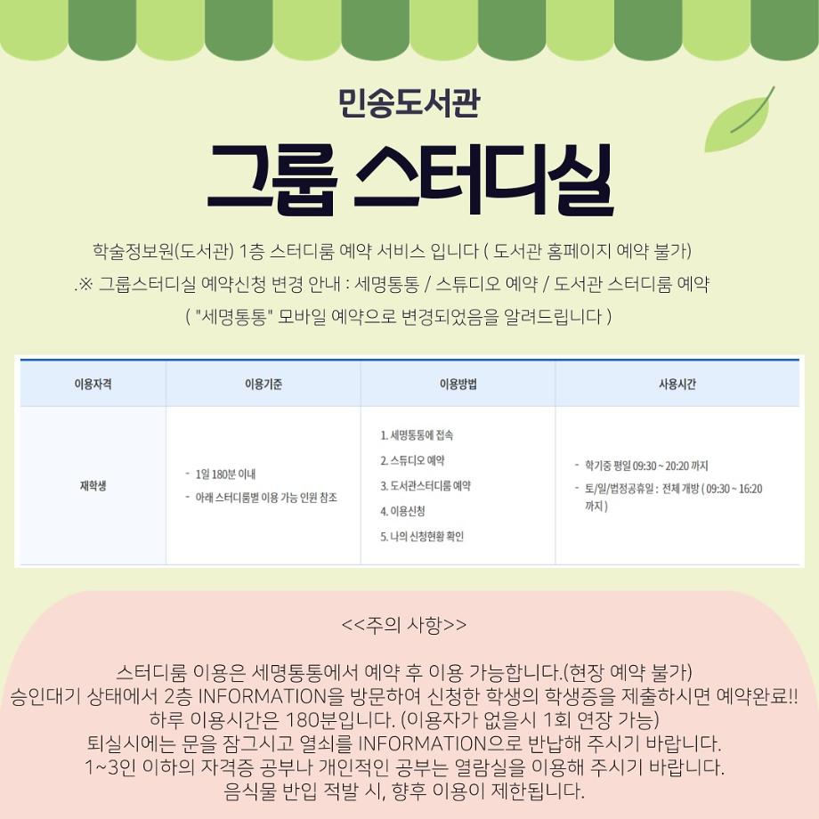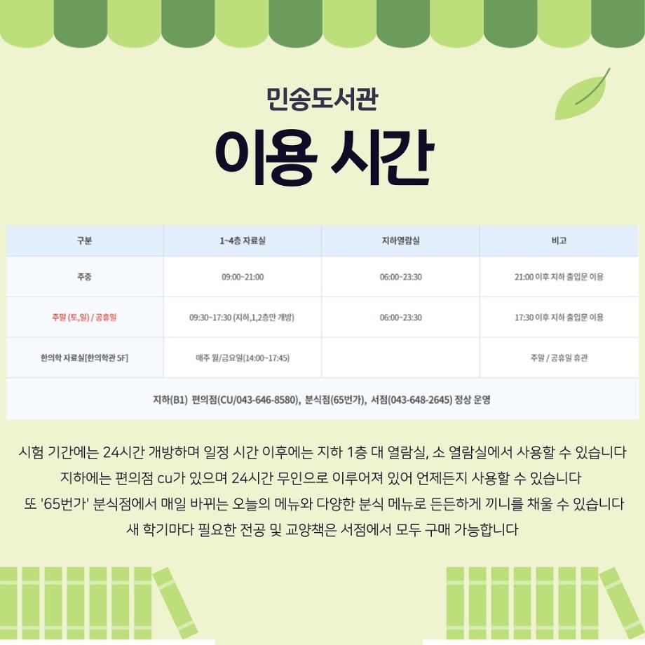더 자세한 사항은 세명대학교 민송도서관 홈페이지에서 확인 가능합니다!🙌🏻