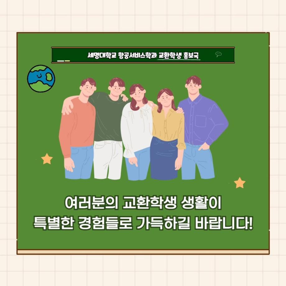본문 시작 홈으로 커뮤니티 학과소개 입학정보 교과과정 커뮤니티 홈페이지가이드 포토갤러리 SNS 소통 공간 포토갤러리 공지사항 동아리 포토갤러리 페이스북 트위터 프린트 중국 교환학생 수업 과목 소개 항공서비스학과 4237 2025-06-13 안녕하십니까 세명대학교 항공서비스학과 온라인 홍보국 💙푸르미르💙입니다. 중국 교환학생을 가면 어떤 공부를 하는지 궁금하지 않으신가요?? 오늘은 그 궁금증을 해결해드립니다!! 소중한 꿈을 품고 그 누구보다 높이 오를 여러분을 저희 "푸르미르" 가 항상 응원하겠습니다 ✈💙 궁금한 사항이 있으시다면 언제든지 SNS로 연락 주십시오 💬 #세명대학교 #항공서비스학과 #세명대 #항공과 #푸르미르 #교환학생 #중국어 #중국교환학생 목록 이전6월 다이어리 다음 제 9회 예비승무원대회