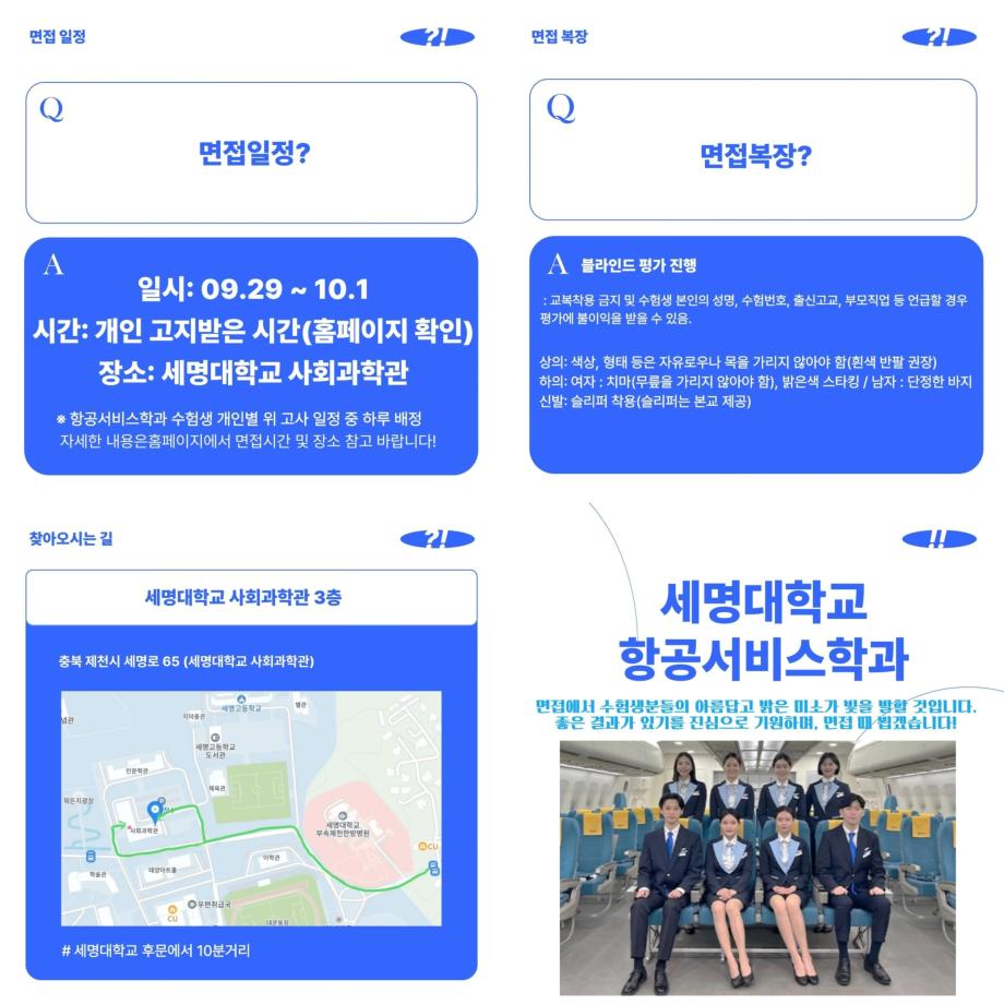 안녕하십니까 세명대학교 항공서비스학과 온라인 홍보국 💙푸르미르💙입니다.