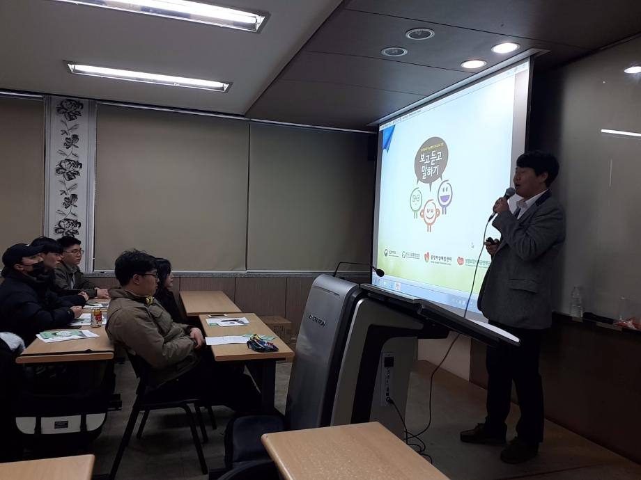 본문 시작 2019학년도 건강상담의 날 특강 "보고·듣고·말하기 교육" CHARM케어센터 4221 2019-04-10 2019학년도 1학기 건강상담의 날 특강 "보고·듣고·말하기 교육" 대상 : 사회복지학과 학생들 일시 : 2019년 4월 10일(수) 10:00~12:30 장소 : 사회과학관 113호 강사 : 제천시 정신건강복지센터 이용복 사회복지사 목록 이전[2019학년도 4월 건강상담의 날 특강 "보고·듣고·말하기 교육" ] 다음 2019학년도 5월 건강상담의 날 특강 "보고·듣고·말하기 교육" 담당부서 : CHARM케어상담센터 담당자 : - 연락처 : 043-649-1789 최종수정일 : 2024-10-26 만족도조사 만족도 조사 이 페이지에서 제공하는 정보에 대하여 만족하시나요? 매우만족 만족 보통 불만족 매우불만족
