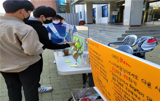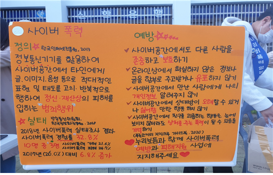 본문 시작 2020학년도 사이버폭력 예방 캠페인 CHARM케어상담센터 4454 2020-10-28 사회복지학과 학생들과 함께 목록 이전2020 상호 교류 협력을 위한 협약식 다음 2020학년도 불법카메라 10월 정기 점검 담당부서 : CHARM케어상담센터 담당자 : - 연락처 : 043-649-1789 최종수정일 : 2024-10-26 만족도조사 만족도 조사 이 페이지에서 제공하는 정보에 대하여 만족하시나요? 매우만족 만족 보통 불만족 매우불만족