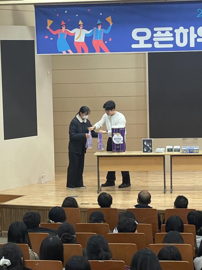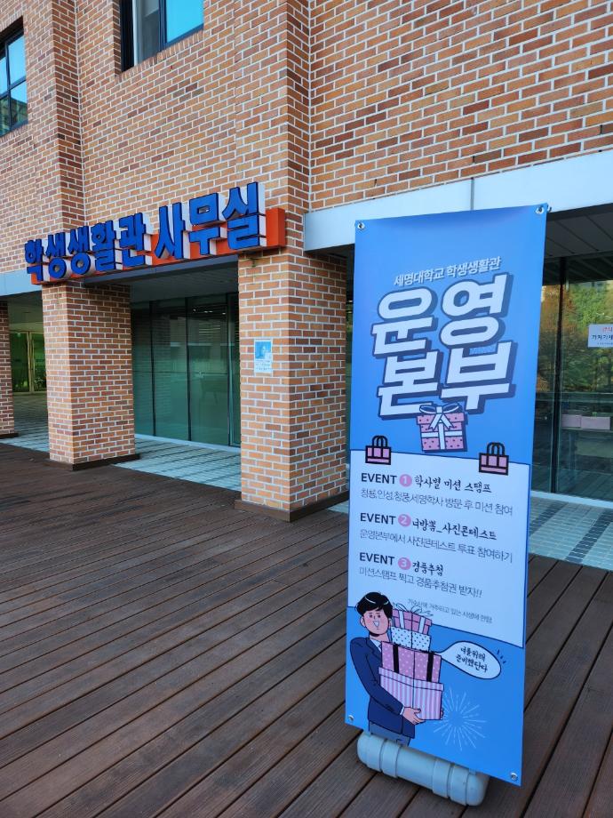 본문 시작 2023학년도 하반기 오픈하우스 진행! 학생생활관 3511 2023-12-01 2023학년도 하반기 오픈하우스 진행! 학사별 미션 후 모은 스탬프 쿠폰으로 경품추첨권 획득!! 목록 이전2023학년도 오픈하우스 "세명학사 쪽지를 찾아라" 미션 진행! 다음 2025학년도 2학기 심폐소생술 교육 실시 담당부서 : 학생생활관 담당자 : - 연락처 : 043-649-7202 최종수정일 : 2024-10-26 만족도조사 만족도 조사 이 페이지에서 제공하는 정보에 대하여 만족하시나요? 매우만족 만족 보통 불만족 매우불만족