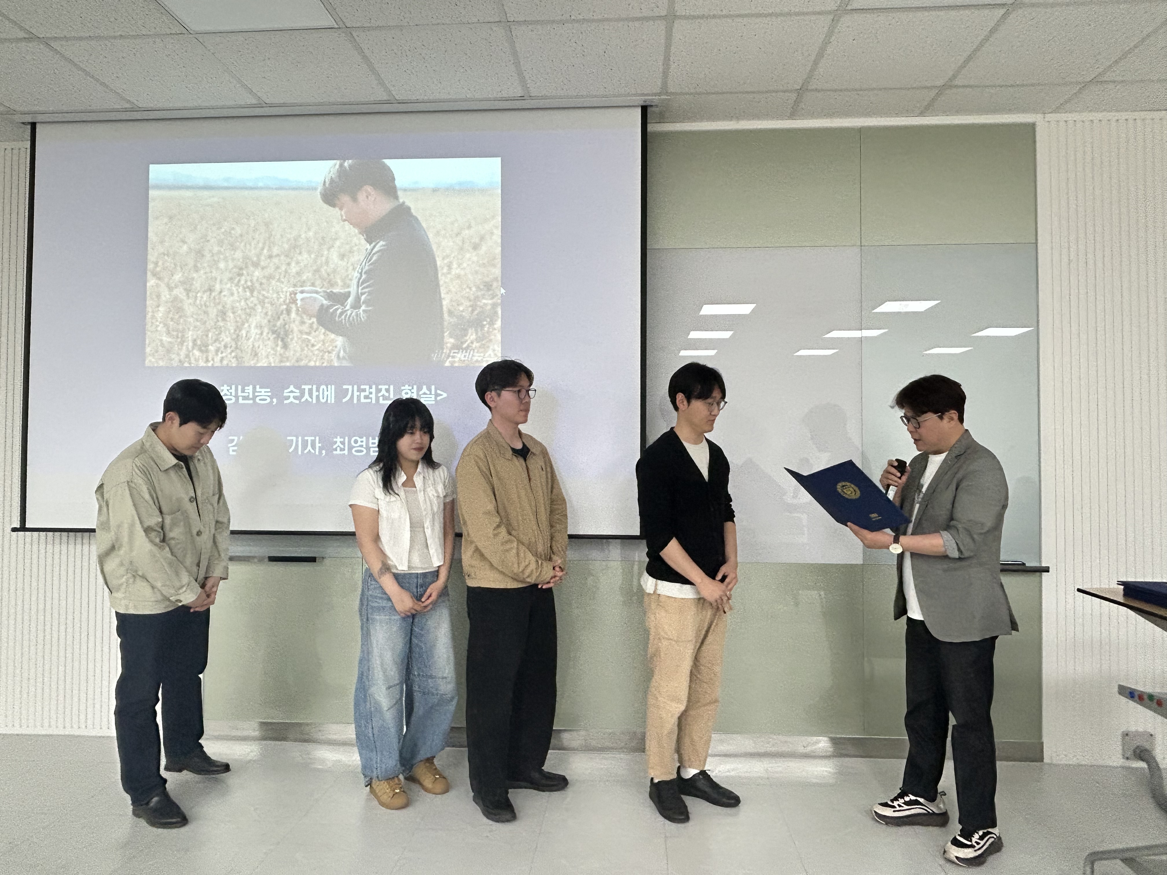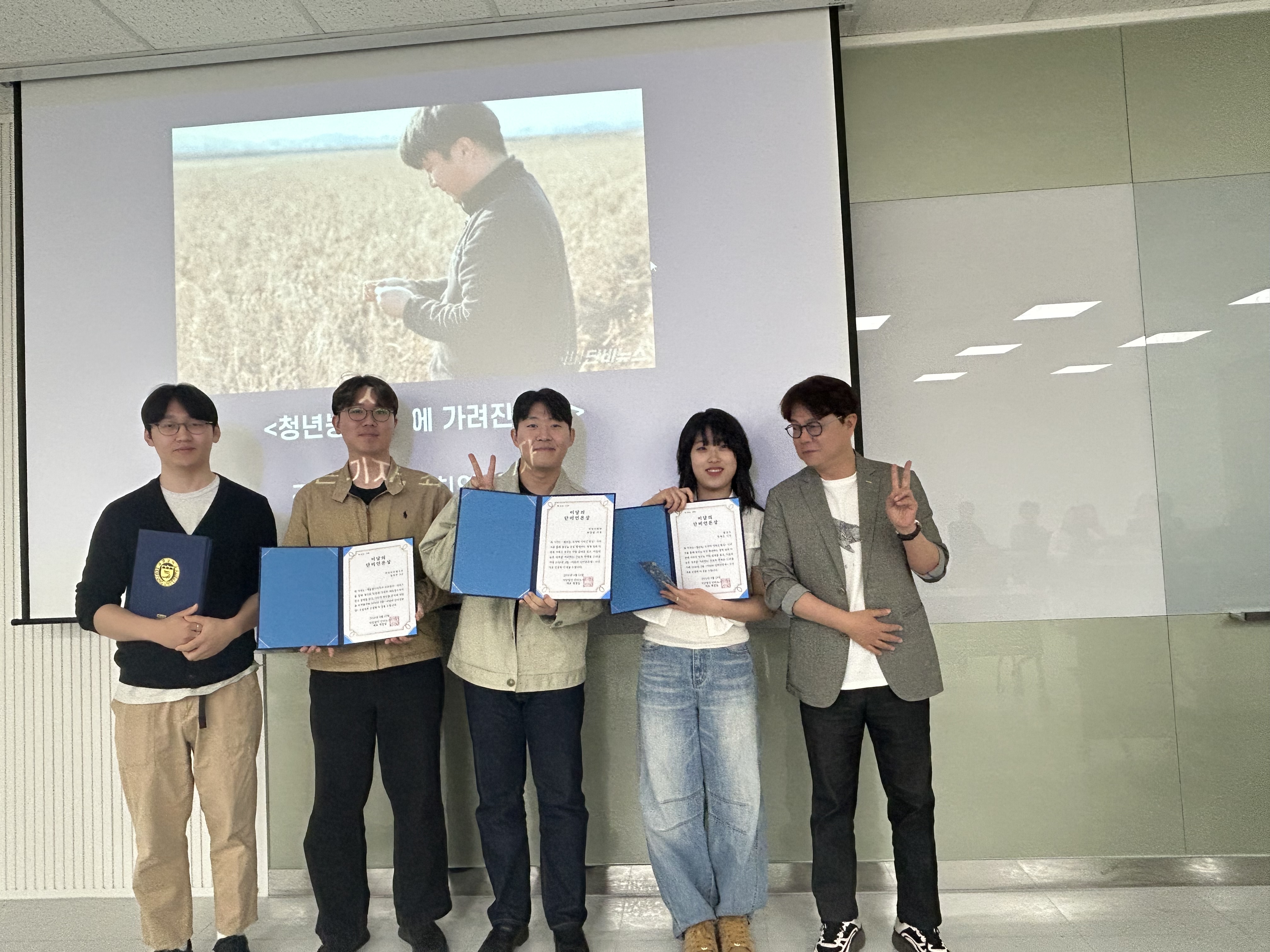 <청년농, 숫자에 가려진 현실> 기사를 쓴 김예은 기자와 최영범 기자까지 이달의 단비 언론상을 공동 수상했답니다.