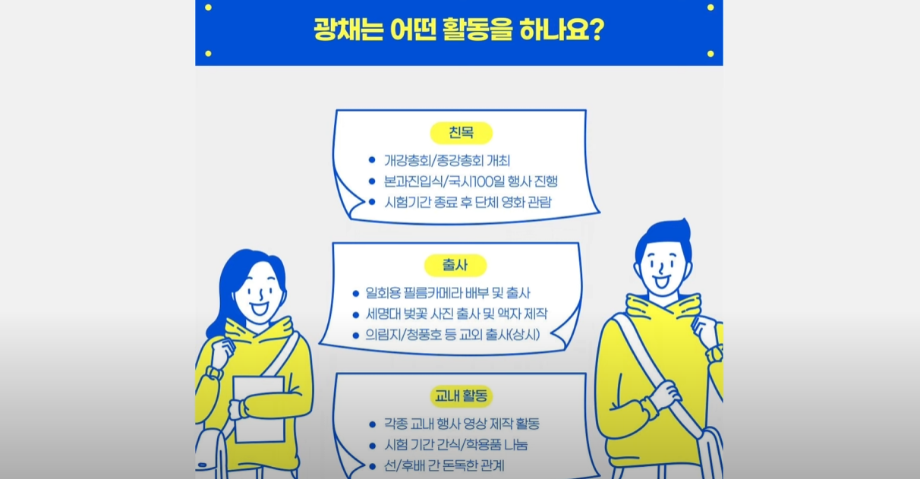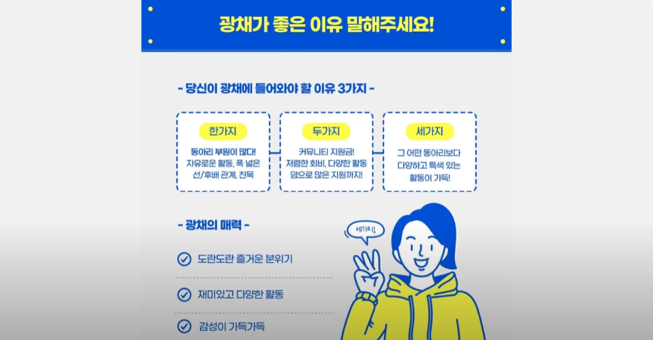 본문 시작 홈으로 커뮤니티 대학소개 교수소개 대학과정 커뮤니티 대학원 대학소식 홈페이지가이드 동아리 장학안내 학생회 동아리 스터디실 이용예약 채용정보 동아리 페이스북 트위터 프린트 [세명한의 미리보기]동아리소개_광채 한의과대학 752 2025-08-28 https://www.youtube.com/watch?v=2CS8_qYn2cI 목록 다음 [세명한의 미리보기]동아리소개_동행 담당부서 : 한의과대학 담당자 : - 연락처 : 043-649-1701 최종수정일 : 2024-10-26 만족도조사 만족도 조사 이 페이지에서 제공하는 정보에 대하여 만족하시나요? 매우만족 만족 보통 불만족 매우불만족