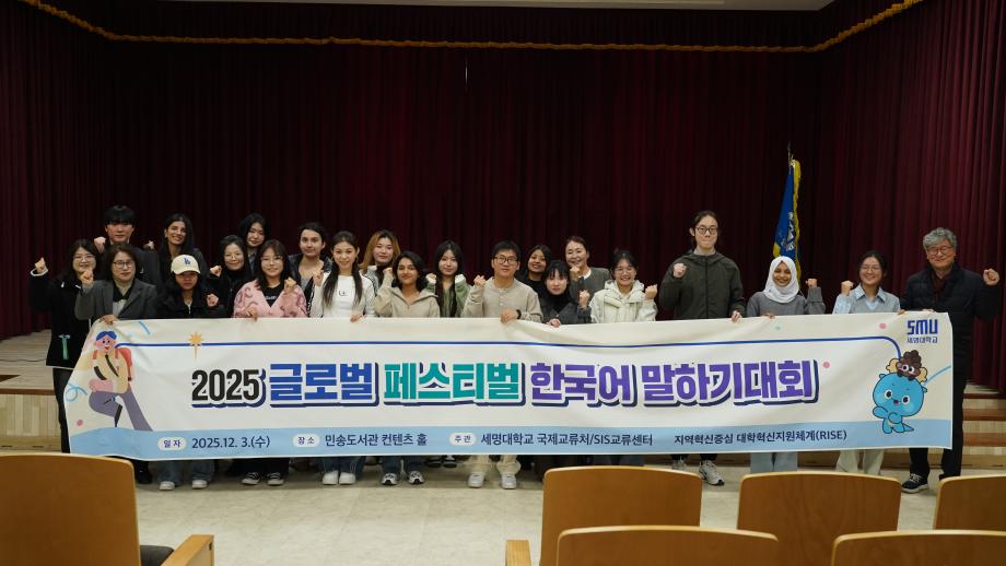 본문 시작 Photo SMU 세명소개 입학/취업 대학/대학원 학사지원 대학생활 연구/산학 기관/시설 SMU Story 소통·공감 학교기업 홈페이지가이드 학생활동 News@SMU 공지사항 보도자료 Photo SMU Media SMU 민송백일장 해카톤 경진대회 학생활동 페이스북 트위터 프린트 제1회 글로벌페스티벌 홍보센터 1893 2025-12-03 제1회 글로벌페스티벌 목록 이전인문예술대학 콘텐츠페스티벌 다음 2025학년도 전기학위수여식 담당부서 : 홍보센터 담당자 : 홍보센터 연락처 : 043-649-1175 최종수정일 : 2024-10-26 만족도조사 만족도 조사 이 페이지에서 제공하는 정보에 대하여 만족하시나요? 매우만족 만족 보통 불만족 매우불만족