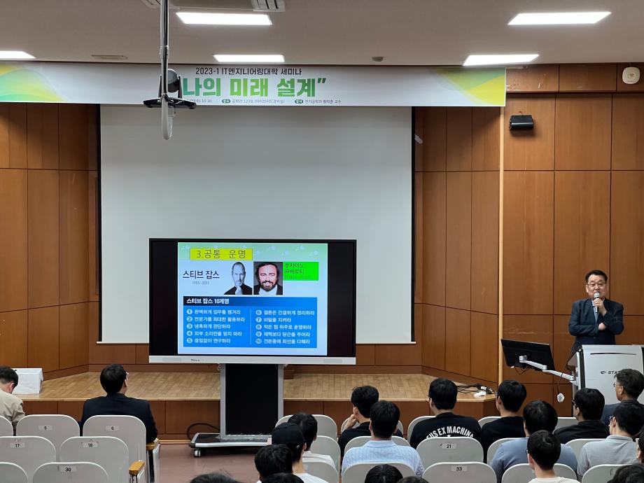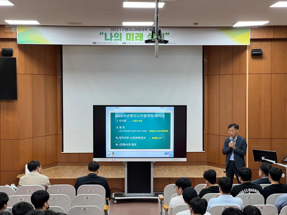 본문 시작 홈으로 커뮤니티 대학소개 학과소개 입학안내 커뮤니티 홈페이지가이드 포토갤러리 대학소식 학과소식 자료실 포토갤러리 포토갤러리 페이스북 트위터 프린트 2023-1학기 학생과 함께하는 세미나 개최 IT엔지니어링대학 2619 2023-06-15 IT엔지니어링대학에서는 재학생들의 학습역량 강화 및 대학 생활 만족도 제고를 위하여 '학생과 함께하는 세미나'를 2023년 6월 14일(수) 공학관 123호에서 개최하였다. 이번 세미나는 '나의 미래 설계 (성공하는 삶을 위하여)' 주제로 황락훈(전기공학과) 교수님이 발표를 하였으며, 학생들에게 경험담과 앞으로의 미래 사회에서 공과대학 학생으로서의 비전을 알 수 있는 좋은 시간이 되 목록 이전제1회 청소년 창의융합(AI-STEAM)행사 참여 다음 2023-1학기 학생과 함께하는 세미나 개최 담당부서 : AI융합대학 담당자 : - 연락처 : 043-649-7422 최종수정일 : 2024-10-26 만족도조사 만족도 조사 이 페이지에서 제공하는 정보에 대하여 만족하시나요? 매우만족 만족 보통 불만족 매우불만족