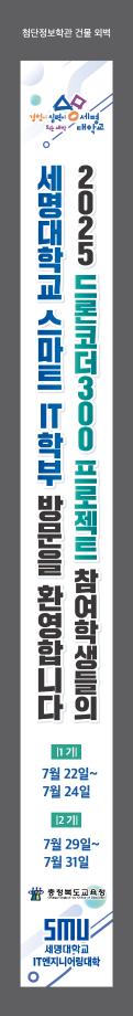 세명대학교(총장 권동현) 2025년 7월 22일부터 충북교육청의 사업 지원을 받아 ‘2025 드론코더300 프로젝트’ 방학프로그램을 진행하였다. 교육 대상자는 제천, 충주, 단양지역 초등학교 5학년 학생들이었으며, 7월 22일부터 24일까지 1기 19명, 7월 29일부터 31일까지 2기 20명, 총 39명의 학생이 선정되어 교육에 참여하였다.