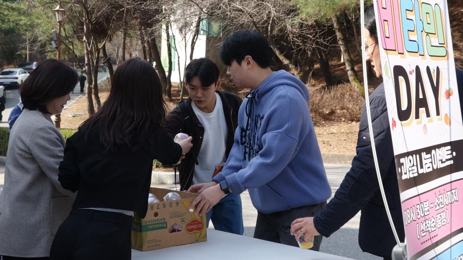 본문 시작 홈으로 커뮤니티 대학소개 학과소개 입학안내 커뮤니티 홈페이지가이드 포토갤러리 대학소식 학과소식 자료실 포토갤러리 포토갤러리 페이스북 트위터 프린트 비타민데이 IT엔지니어링대학 119 2026-03-24 재학생을 위한 14차 과일나눔 이벤트 '비타민 데이' 3월 24일(화), 학생회관 출입구에서 진행됩니다. 목록 이전새해 복 많이 받으세요 다음 IT단과대를 알려드립니다 (3월) 담당부서 : AI융합대학 담당자 : - 연락처 : 043-649-7422 최종수정일 : 2024-10-26 만족도조사 만족도 조사 이 페이지에서 제공하는 정보에 대하여 만족하시나요? 매우만족 만족 보통 불만족 매우불만족