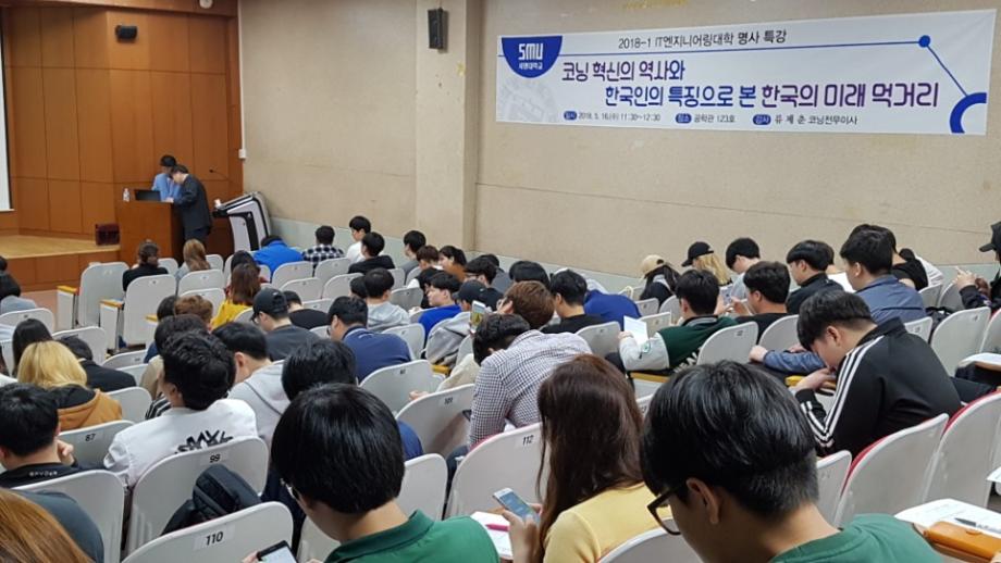 본문 시작 홈으로 커뮤니티 대학소개 학과소개 입학안내 커뮤니티 홈페이지가이드 포토갤러리 대학소식 학과소식 자료실 포토갤러리 포토갤러리 페이스북 트위터 프린트 2018-1학기 IT엔지니어링대학 명사초청특강 IT엔지니어링대학 6310 2018-05-17 2018학년도 1학기 IT엔지니어링대학 명사초청특강을 5우러 16일 공학관 123호에서 실시하였다. 특강 강사인 류제춘전무는 코닝정밀소재 신사업추진실장으로, 이번 특강의 주제는 <코닝혁신의 역사와 한국인의 특징으로 본 한국의 미래 먹거리> 로 미래인재상은 변화에 능동적이고, 적극적으로 대응하는 사람이라고 언급. 참여학생에는 위세광명 포인트 2점을 부여하였다. 목록 이전IT엔지니어링대학 2018-1차 학부(과)조교회의 다음 2018학년도 대학일자리센터 지원 IT엔지니어링대학 임직원 취업특강 1차실시 담당부서 : AI융합대학 담당자 : - 연락처 : 043-649-7422 최종수정일 : 2024-10-26 만족도조사 만족도 조사 이 페이지에서 제공하는 정보에 대하여 만족하시나요? 매우만족 만족 보통 불만족 매우불만족