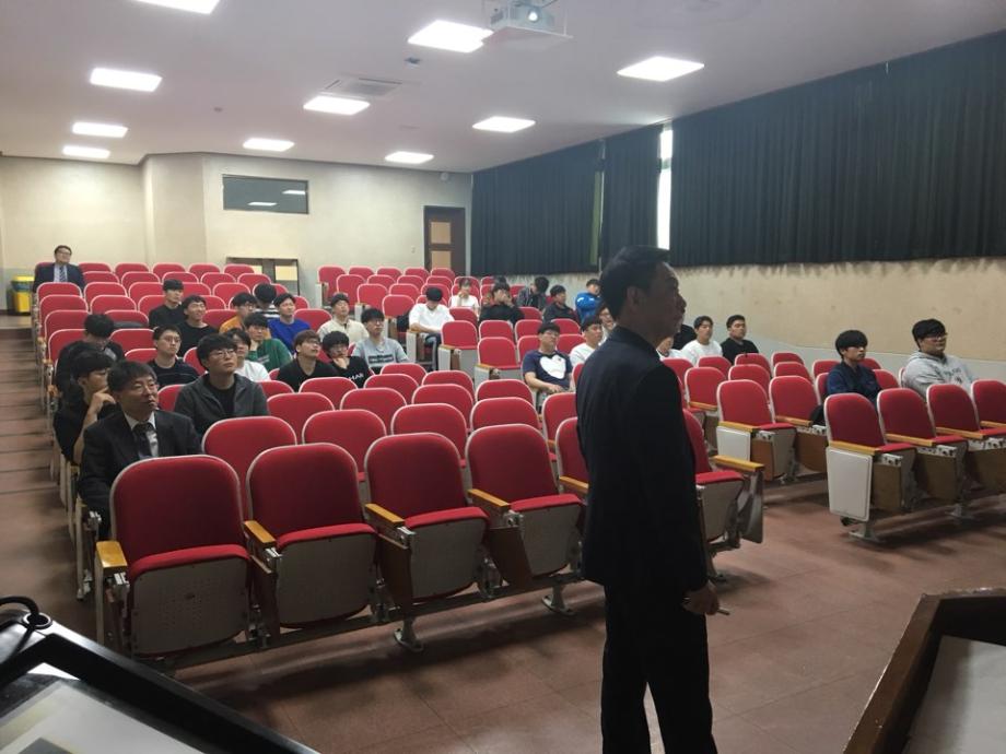 2018학년도 5월 30일 공학관 123호에서 창성에이스산업 이의용대표께서 특강을 실시하였다. 이의용회장은 300억원 매출의 소방방재 특화회사인 창성에이스산업 창업자로, 우리대학에서 박사학위를 받으신 분이다.