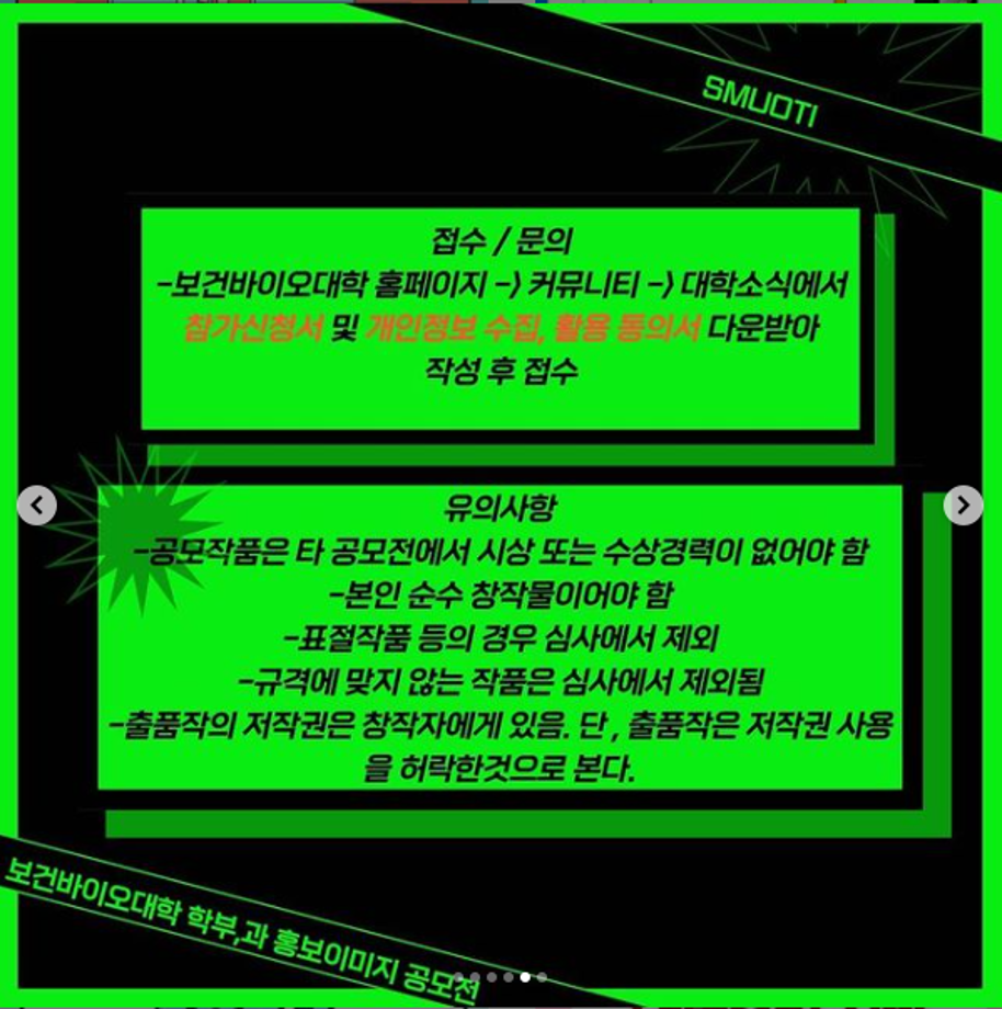 이번 소식은~ 2021년 제 4회 보건바이오대학 학부,학과 홍보 이미지 공모전으로 찾아왔어용~!🤗 보건바이오대학에서는 자신들의 학부,학과의 홍보를 이미지화 시켜 알리는 공모전도 개최하고 있습니다~🎉🎉