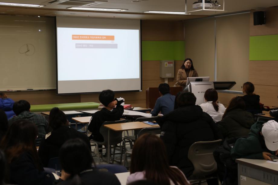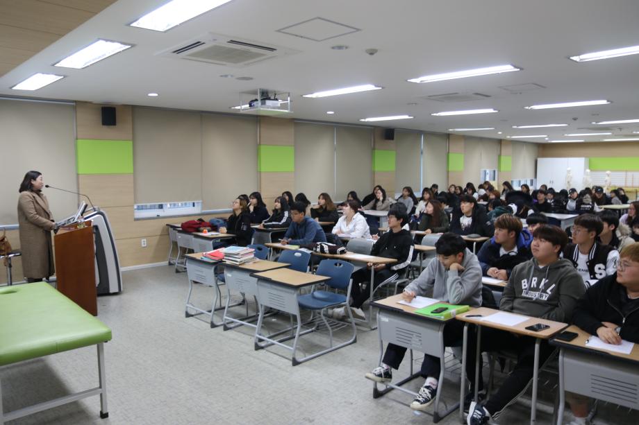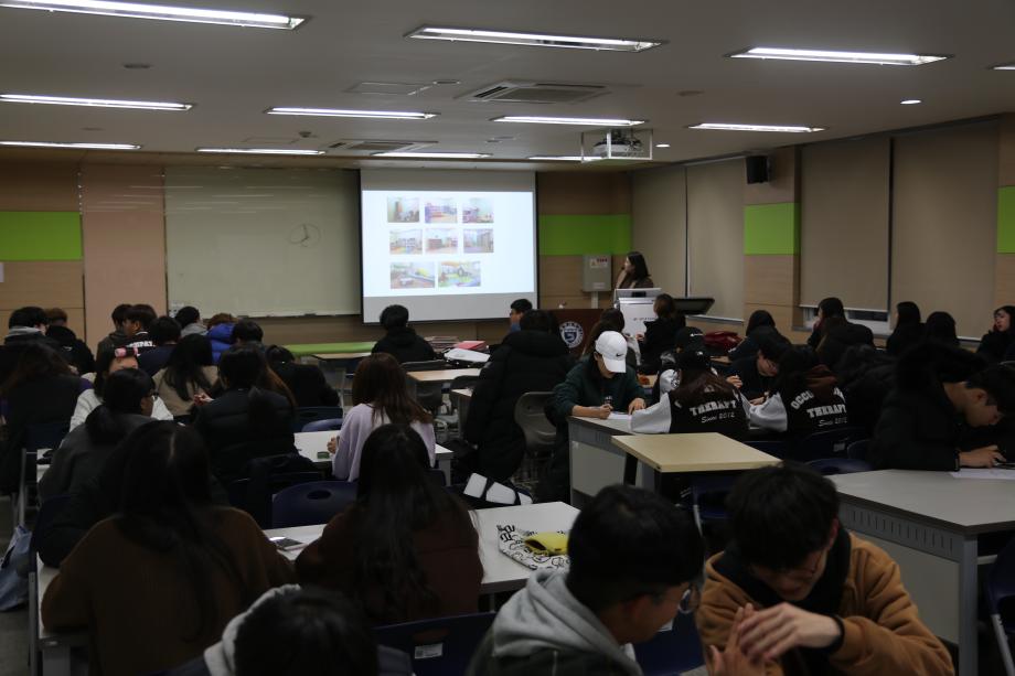 본문 시작 홈으로 커뮤니티 학과소개 진로 및 취업 학과과정 커뮤니티 SNS 홈페이지가이드 학과 소식 및 행사 학과공지 학과 소식 및 행사 대학생활 엿보기 어쩌다 출근 챌린지 학생회 동아리 통학버스 시간표 학과 소식 및 행사 페이스북 트위터 프린트 2018학년도 2차 학술특강 작업치료학과 6980 2018-11-07 11월 7일 1학년 재학생들을 대상으로 2차 학술특강이 진행 되었습니다. '작업치료사의 역량과 아동작업치료의 이해' 라는 주제로 황선미 원장님께서 특강하셨습니다. 학생들이 전공에 대한 이해화 궁극적인 취업에 있어서 본인들이 갖추어야 할 역량과 그 입지를 확인하여 전문 작업치료사의 초석을 다지는 좋은 시간이였습니다. 목록 이전2018 국가고시 합격 응원 행사 다음 2018-2학기 종강총회 담당부서 : 작업치료학과 담당자 : - 연락처 : 043-649-1632 최종수정일 : 2024-10-26 만족도조사 만족도 조사 이 페이지에서 제공하는 정보에 대하여 만족하시나요? 매우만족 만족 보통 불만족 매우불만족