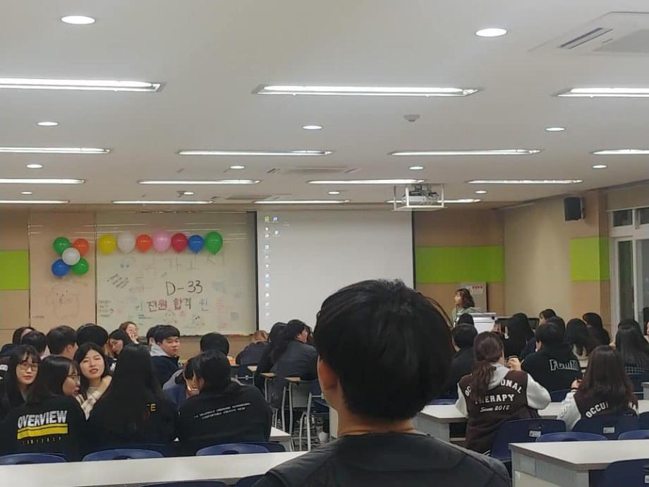본문 시작 홈으로 커뮤니티 학과소개 진로 및 취업 학과과정 커뮤니티 SNS 홈페이지가이드 학과 소식 및 행사 학과공지 학과 소식 및 행사 대학생활 엿보기 어쩌다 출근 챌린지 학생회 동아리 통학버스 시간표 학과 소식 및 행사 페이스북 트위터 프린트 2019 국가고시 응원행사 작업치료학과 7875 2019-11-05 11월 5일 이학관 109호에서 4학년 선배님들의 국가고시 합격 응원 행사가 진행되었습니다.☺응원 영상 시청과 함께 떡 증정이 진행되었습니다. 지금까지 열심히 공부하신 만큼 남은 기간도 열심히 준비하셔서 좋은 결과가 있기를 바랍니다. 세명대학교 작업치료학과가 5년 연속 국가고시 100% 합격이 되기를 기원합니다.🙏🙏 목록 다음 세명대 작업치료학과, 5년 연속 100% 국가시험 합격! 다음 2019-2 종강총회 및 가운식 담당부서 : 작업치료학과 담당자 : - 연락처 : 043-649-1632 최종수정일 : 2024-10-26 만족도조사 만족도 조사 이 페이지에서 제공하는 정보에 대하여 만족하시나요? 매우만족 만족 보통 불만족 매우불만족