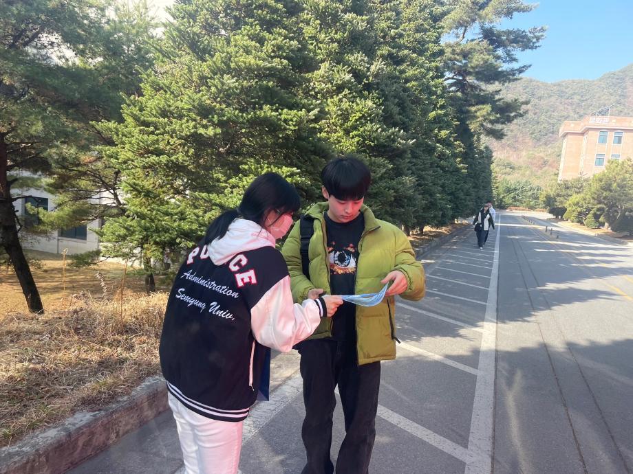 본문 시작 홈으로 커뮤니티 학과소개 교수소개 학과과정 커뮤니티 홈페이지가이드 포토갤러리 학부공지 학과일정 포토갤러리 학생회 동아리 포토갤러리 페이스북 트위터 프린트 2023 ROAD 전동킥보드 단속 캠페인 경찰학과 3273 2023-03-22 3월 22일 오전, 경찰학과 과동아리인 ROAD가 제천경찰서, 제천시청, 모범운전자회와 함께 세명대학교 정문, 후문, 학술관에서 전동킥보드 단속캠페인을 진행하였습니다. 목록 이전2023 경찰학과 개강총회 이전2023 꿈설계학기 OT 만족도조사 만족도 조사 이 페이지에서 제공하는 정보에 대하여 만족하시나요? 매우만족 만족 보통 불만족 매우불만족