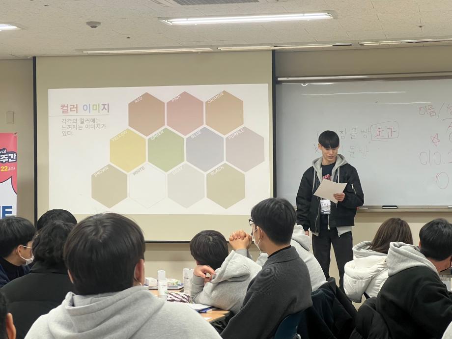 1일차에는 학과 소개 및 동아리 소개, 퍼스널컬러 등을 진행하고 체육관에서 축하공연을 관람하였습니다.