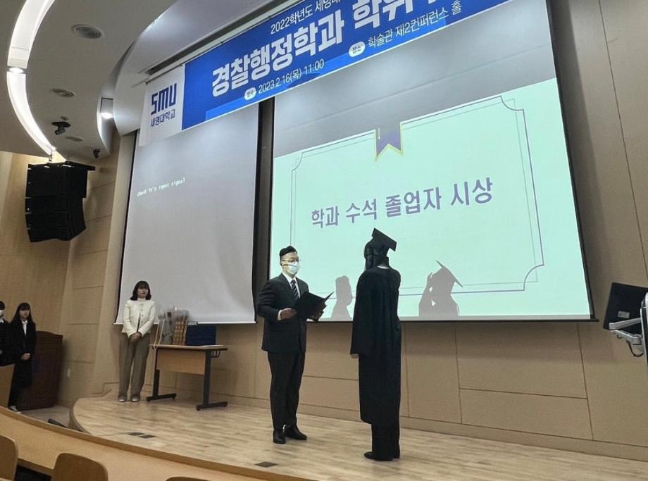 본문 시작 홈으로 커뮤니티 학과소개 교수소개 학과과정 커뮤니티 홈페이지가이드 포토갤러리 학부공지 학과일정 포토갤러리 학생회 동아리 포토갤러리 페이스북 트위터 프린트 2023 학위수여식 경찰학과 2792 2023-02-16 2022학년도 세명대학교 경찰행정학과 학위식을 2023년 2월 16일 학술관 제 2컨퍼런스 홀에서 진행하였습니다. 세명대 경찰행정학과 졸업생 여러분들의 졸업을 다시 한번 축하드리면서 졸업생 여러분들의 앞날을 응원합니다! 목록 다음 2023 꿈설계학기 OT 다음 2023학년도 경찰학과 학생회 소개 영상 만족도조사 만족도 조사 이 페이지에서 제공하는 정보에 대하여 만족하시나요? 매우만족 만족 보통 불만족 매우불만족