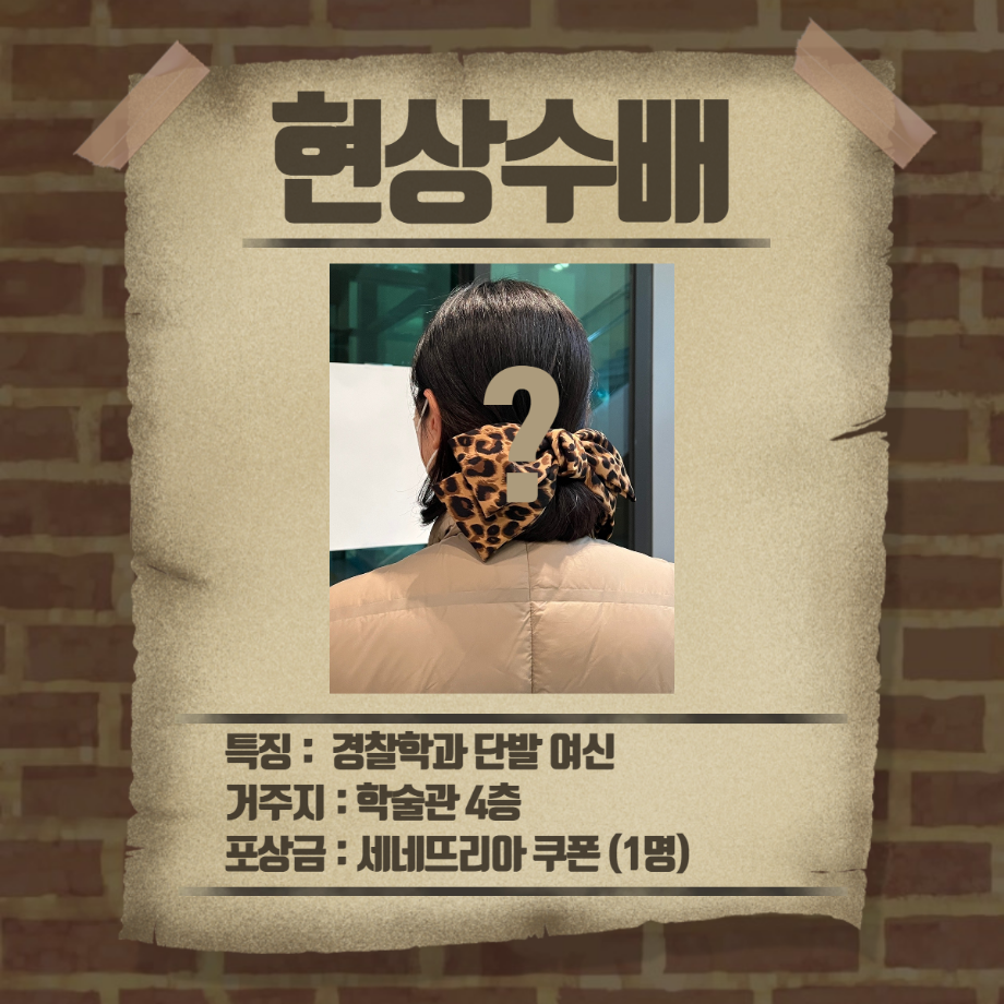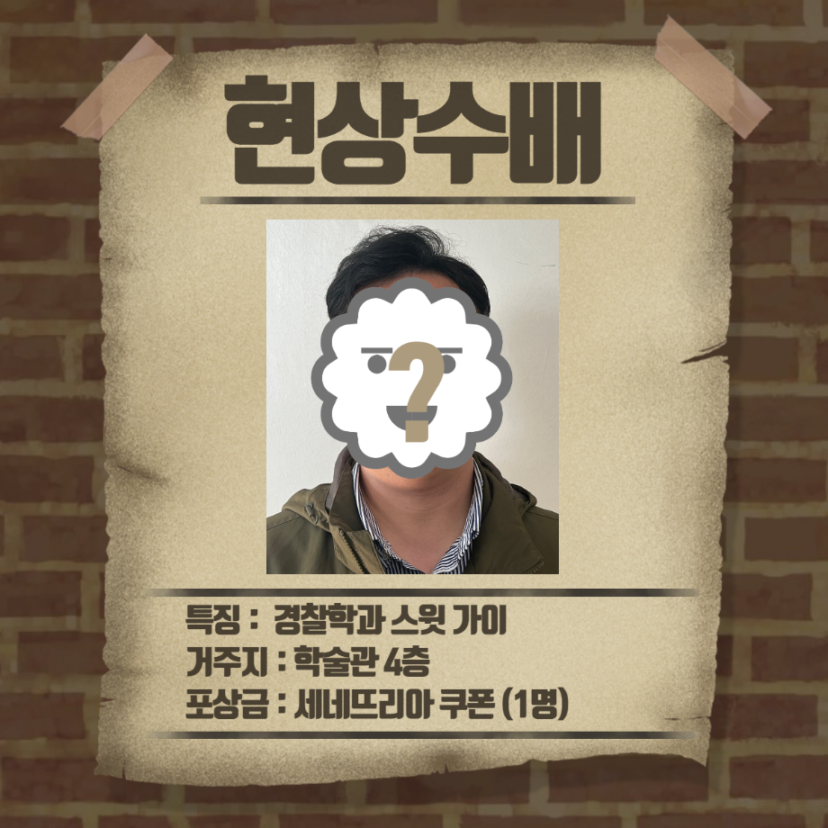 본문 시작 홈으로 커뮤니티 학과소개 교수소개 학과과정 커뮤니티 홈페이지가이드 포토갤러리 학부공지 학과일정 포토갤러리 학생회 동아리 포토갤러리 페이스북 트위터 프린트 3,4학년 3월 게릴라 이벤트 진행 경찰학과 3247 2023-03-30 3월 30일 목요일, 13시부터 경찰학과 3,4학년 학생들을 대상으로 게릴라 이벤트를 진행하였습니다. 게릴라 이벤트 내용은 1,2학년과 동일하게 "레몬이를 살해한 범인과 살해된 레몬이를 찾아주세요" 였습니다. 현상수배 전단지를 인스타 게시물을 통해 확인하신 후 범인을 찾아 인증샷을 찍어 오거나 범인에게 살해당한 레몬이를 찾아 과사무실로 가져오시는 분께 포상금을 제공하는 활동을 하였습니다. 목록 이전1,2학년 3월 게릴라 이벤트 진행 다음 경찰학과 4월 일정 만족도조사 만족도 조사 이 페이지에서 제공하는 정보에 대하여 만족하시나요? 매우만족 만족 보통 불만족 매우불만족