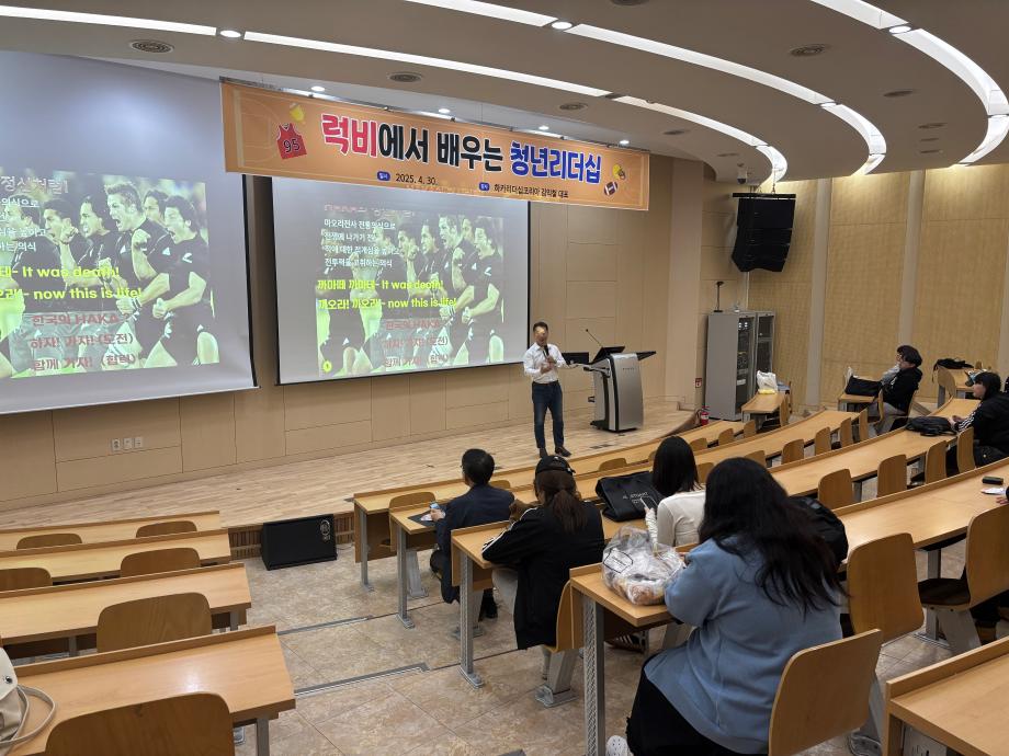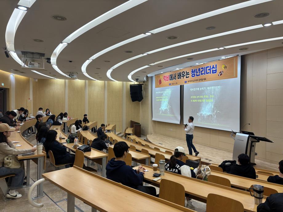 본문 시작 홈으로 커뮤니티 학과소개 학생진로 교과과정 커뮤니티 학과 SNS 홈페이지가이드 학과 갤러리 공지사항 대학원 학과 갤러리 학과 이야기 동아리 학생회 학과 갤러리 페이스북 트위터 프린트 [경영학과] 김익철 하카리더십코리아 대표 학술특강 경영학과 1591 2025-04-30 4월 30일에 [김익철 하카리더십코리아 대표의 “럭비에서 배우는 청년 리더십”] 경영학술특강이 진행되었습니다. 참여한 학생들에게 동기부여를 전하는 뜻깊은 시간이었습니다. 목록 이전[일반대학원 경영학과] 논문토론회 개최 다음 [경영학과] AI를 활용한 경영학과 홍보 콘텐츠 공모전 담당부서 : 경영학과 담당자 : - 연락처 : 043-649-1766 최종수정일 : 2024-10-26 만족도조사 만족도 조사 이 페이지에서 제공하는 정보에 대하여 만족하시나요? 매우만족 만족 보통 불만족 매우불만족