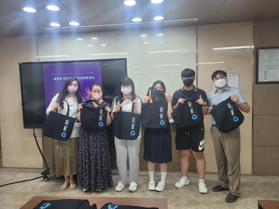 본문 시작 홈으로 커뮤니티 학과소개 학생진로 교과과정 커뮤니티 학과 SNS 홈페이지가이드 학과 갤러리 공지사항 대학원 학과 갤러리 학과 이야기 동아리 학생회 학과 갤러리 페이스북 트위터 프린트 2022학년도 제천 공동교육과정 종강식 경영학과 3045 2022-07-14 2022.7.12 화요일 세명대 경영학과에서 진행한 제천공동교육과정 종강식이 열렸다. 그동안 코스에 참여한 학생들과 교수님들간 끝인사를 나누고 경영학과 에코백 등 소정의 기념품을 전달했다. 목록 이전2022학년도 경영프로젝트 회계스타K [불4조] 다음 2022학년도 경영프로젝트 회계스타K [세명회담] 담당부서 : 경영학과 담당자 : - 연락처 : 043-649-1766 최종수정일 : 2024-10-26 만족도조사 만족도 조사 이 페이지에서 제공하는 정보에 대하여 만족하시나요? 매우만족 만족 보통 불만족 매우불만족