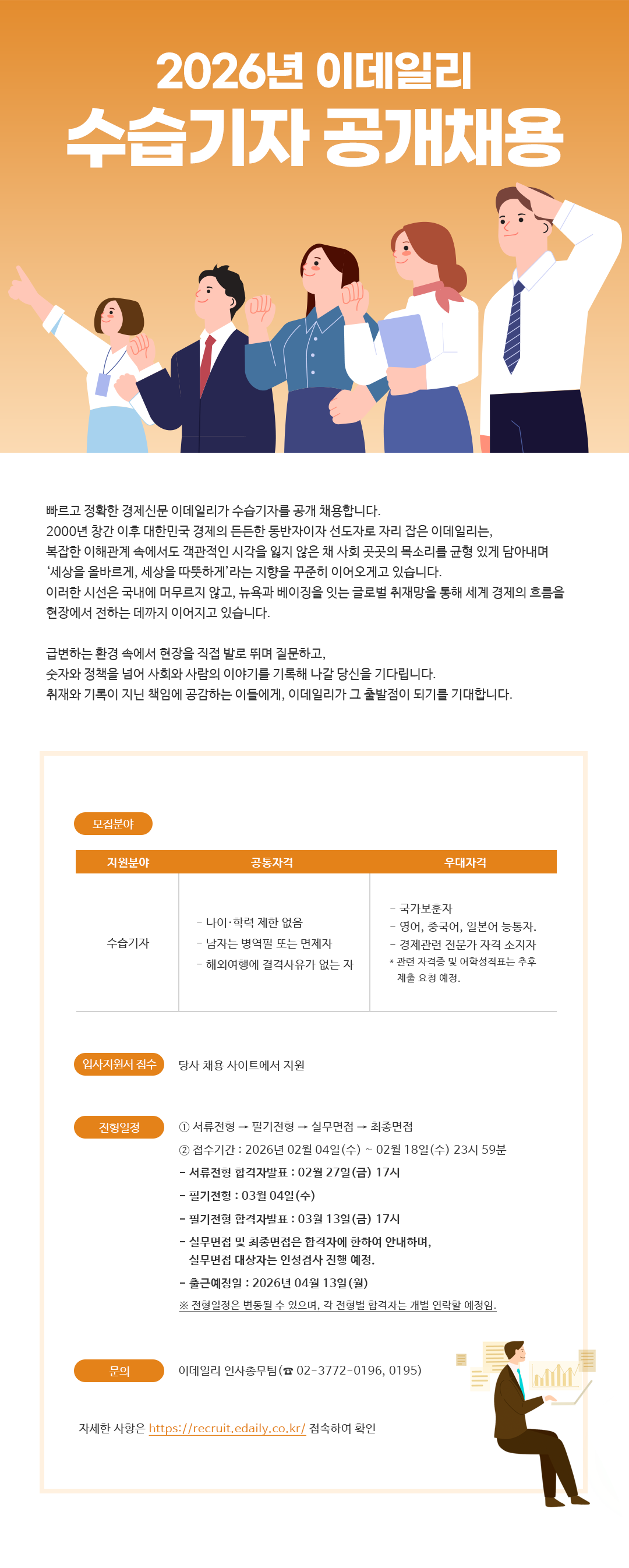 본문 시작 게시판 대학원소개 교수/학생소개 교과과정 입학/학사안내 공지사항 게시판 저널리즘연구소 홈페이지가이드 언론사 채용공고 단비뉴스 편집실 단비서재 세저리 이야기 언론사 채용공고 언론계 동향 언시 후기 사진첩 언론 현장에서 언론사 채용공고 페이스북 트위터 프린트 (~2/18) 이데일리 수습기자 공개채용 저널리즘대학원 조회 : 673 등록일 : 2026-02-04 채용공고 바로가기 목록 이전(~2/13) 인베스트조선 수습·경력기자 채용 다음 (~2/15) 쿠키뉴스 취재기자 채용 공고