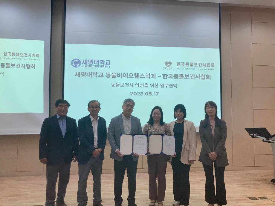 본문 시작 홈으로 학과게시판 학과소개 교육과정 학과게시판 관련사이트 홈페이지가이드 포토갤러리 학과소식 포토갤러리 동아리 소개 포토갤러리 페이스북 트위터 프린트 동물바이오헬스학과_한국동물보건사협회 업무 협약 체결 동물바이오헬스학과 2048 2023-05-19 2023년 5월17일 세명대학교 동물바이오헬스학과는 한국동물보건사협회와 업무협약을 맺었습니다. 업무협약의 내용은 세명대학교 동물바이오헬스학과 학생이 동물보건사가 되기 위해 필요한 상담 및 실습등을 지원할 계획입니다. 금번 업무협약과 동시에 한국동물보건사협회 김수연 회장님께서 동물보건사의 현황에 대한 내용으로 특강을 진행해 주셨습니다. 이번 행사를 통해 우리 학생들이 동물보건사라는 직업에 대하여 한걸음 더 가까워지는 계기가 될 수 있었습니다. 목록 이전2023 동물바이오헬스학과 MT 다음 동물바이오헬스학과 제천제일고등학교 전공체험(프리칼리지) 담당부서 : 동물보건학과 담당자 : - 연락처 : 043-649-1627 최종수정일 : 2024-10-26 만족도조사 만족도 조사 이 페이지에서 제공하는 정보에 대하여 만족하시나요? 매우만족 만족 보통 불만족 매우불만족