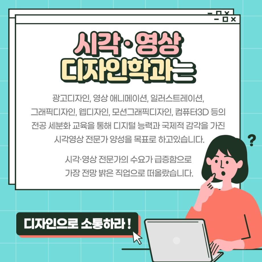 본문 시작 홈으로 학과자랑 학과소개 학과과정 시영소식 입학/취업 AI 학과자랑 SNS소통 홈페이지가이드 갤러리 학과자랑 갤러리 공모전 동아리 졸업전시회 갤러리 페이스북 트위터 프린트 시각영상디자인학과 알아보기~ 시각영상디자인학과 3240 2021-12-31 시각영상디자인학과 알아보기~ 목록 이전시각디자인과에서 시행한 융합캡스톤 이전명암산채건강마을벽화봉사 담당부서 : 시각영상디자인학과 담당자 : - 연락처 : 043-649-1726 최종수정일 : 2024-10-26 만족도조사 만족도 조사 이 페이지에서 제공하는 정보에 대하여 만족하시나요? 매우만족 만족 보통 불만족 매우불만족
