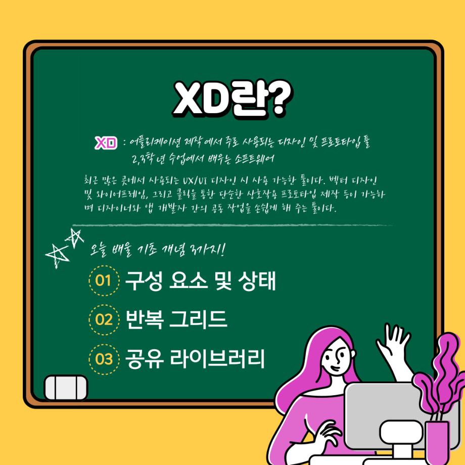 본문 시작 홈으로 학과자랑 학과소개 학과과정 시영소식 입학/취업 AI 학과자랑 SNS소통 홈페이지가이드 갤러리 학과자랑 갤러리 공모전 동아리 졸업전시회 갤러리 페이스북 트위터 프린트 예비 대학생을 위한 디자인 프로그램 설명 6탄 (XD) 시각영상디자인학과 2314 2022-02-13 목록 이전예비 대학생을 위한 디자인 프로그램 설명 5탄 (인디자인) 다음 예비 대학생을 위한 디자인 프로그램 설명 7탄 (Cinema 4D) 담당부서 : 시각영상디자인학과 담당자 : - 연락처 : 043-649-1726 최종수정일 : 2024-10-26 만족도조사 만족도 조사 이 페이지에서 제공하는 정보에 대하여 만족하시나요? 매우만족 만족 보통 불만족 매우불만족