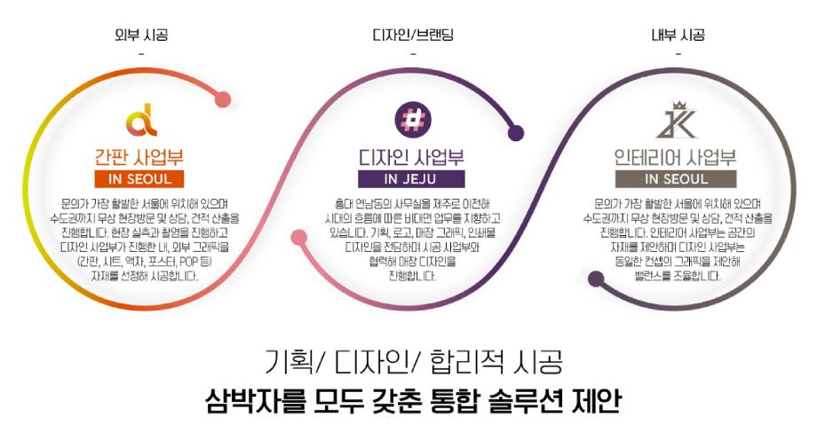 오프라인 매장을 운영하는 프랜차이즈에서 그래픽 디자이너로 재직하다 보니 인테리어와 협업 업무가 많아 자연스럽게 인테리어와 시공 분야를 체득하게 되었습니다. 그래서 통합적인 솔루션을 제안할 수 있게 되면서 사업을 생각하게 되더라고요. 그래서 졸업 후 바로 자기 사업을 하기보다 회사에서 다양한 협업을 진행해 보고 경험을 쌓은 후 독립하시길 권유 드리는 바입니다.