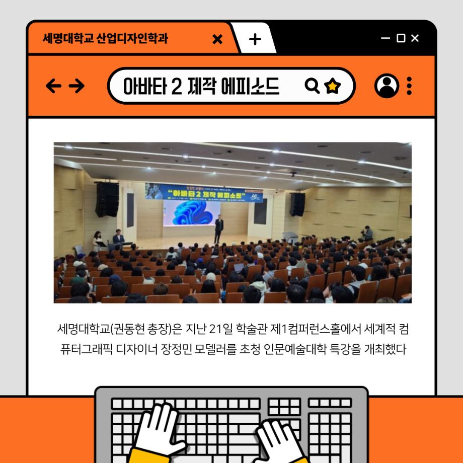 본문 시작 홈으로 학과생활 학과소개 교수소개 교과과정 학과생활 홈페이지가이드 사진게시판 공지사항 사진게시판 전공자료실 동아리 학과행사 사진게시판 페이스북 트위터 프린트 [카드뉴스] 아바타 2 제작 에피소드 산업디자인학과 3083 2023-04-17 목록 이전[특강]제천제일고등학교 강의형 특강진행_류*현 교수 다음 [카드뉴스] 세명대학교 재학생 무료 건겅검진 시행 담당부서 : 산업디자인학과 담당자 : - 연락처 : 043-649-1436 최종수정일 : 2024-10-26 만족도조사 만족도 조사 이 페이지에서 제공하는 정보에 대하여 만족하시나요? 매우만족 만족 보통 불만족 매우불만족