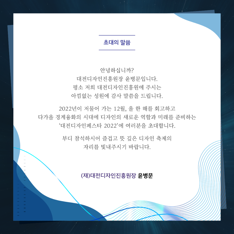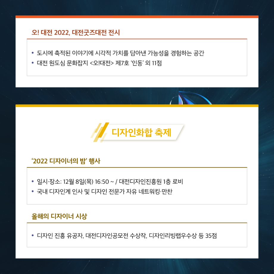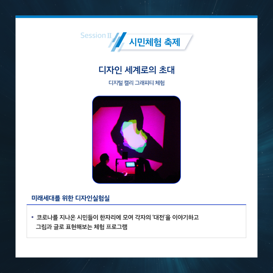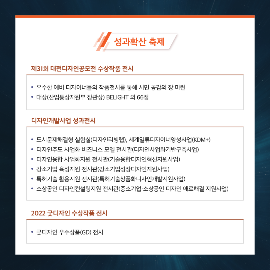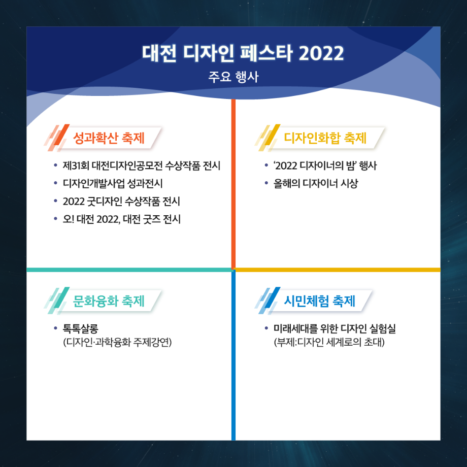 본문 시작 홈으로 학과생활 학과소개 교수소개 교과과정 학과생활 홈페이지가이드 사진게시판 공지사항 사진게시판 전공자료실 동아리 학과행사 사진게시판 페이스북 트위터 프린트 [전시회] 2022 대전 디자인 페스타 산업디자인학과 2770 2022-12-01 목록 이전[대학혁신지원사업] 연구역량강화 세미나 _산디과 광Studio 다음 [한국디자인학회] 2022 서울디자인 대학생 워크숍 디자인 학술상 수상 담당부서 : 산업디자인학과 담당자 : - 연락처 : 043-649-1436 최종수정일 : 2024-10-26 만족도조사 만족도 조사 이 페이지에서 제공하는 정보에 대하여 만족하시나요? 매우만족 만족 보통 불만족 매우불만족