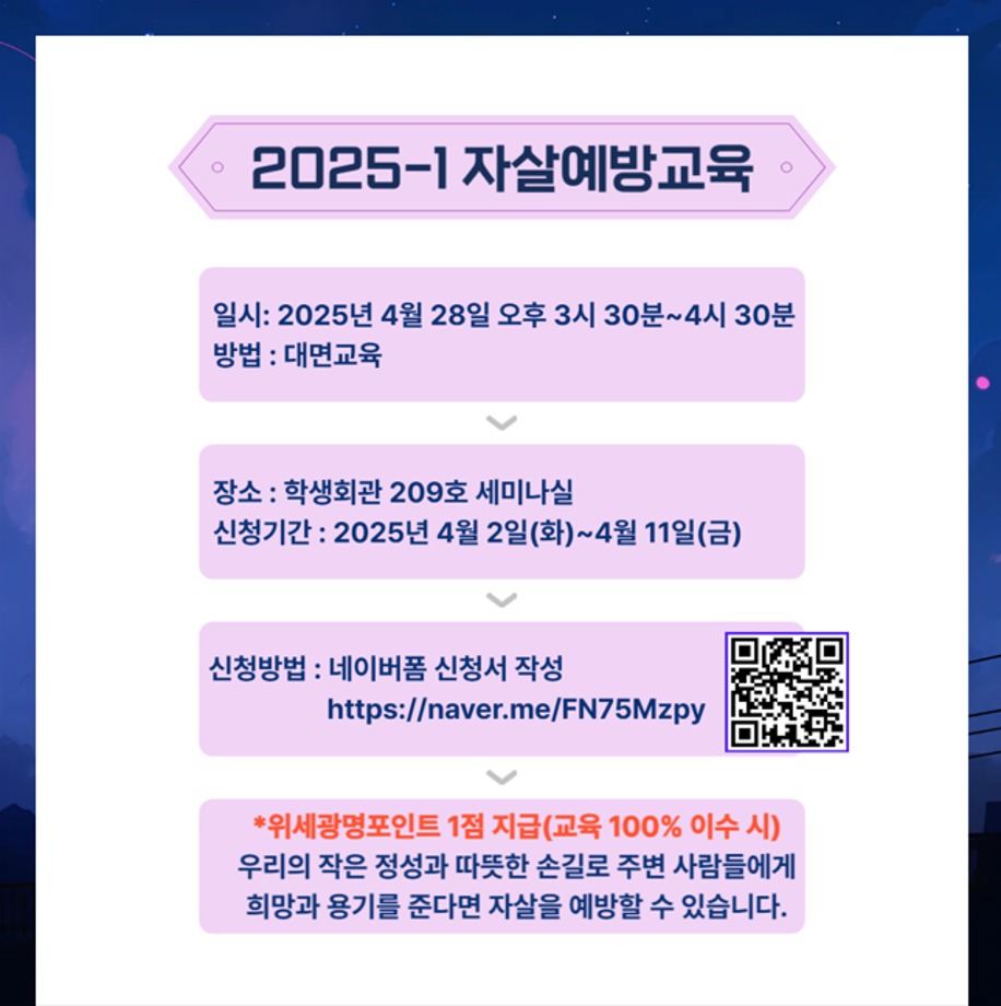 본문 시작 홈으로 학과생활 학과소개 교수소개 교과과정 학과생활 홈페이지가이드 사진게시판 공지사항 사진게시판 전공자료실 동아리 학과행사 사진게시판 페이스북 트위터 프린트 [CHARM케어상담센터] 2025학년도 1학기 자살예방교육 실시 산업디자인학과 1259 2025-04-03 목록 이전[학생처] 제10회 커뮤니티 페스티벌 다음 [산디과] 세명대학교 창업몰 OPEN_학교 기념물 제작 및 판매 담당부서 : 산업디자인학과 담당자 : - 연락처 : 043-649-1436 최종수정일 : 2024-10-26 만족도조사 만족도 조사 이 페이지에서 제공하는 정보에 대하여 만족하시나요? 매우만족 만족 보통 불만족 매우불만족