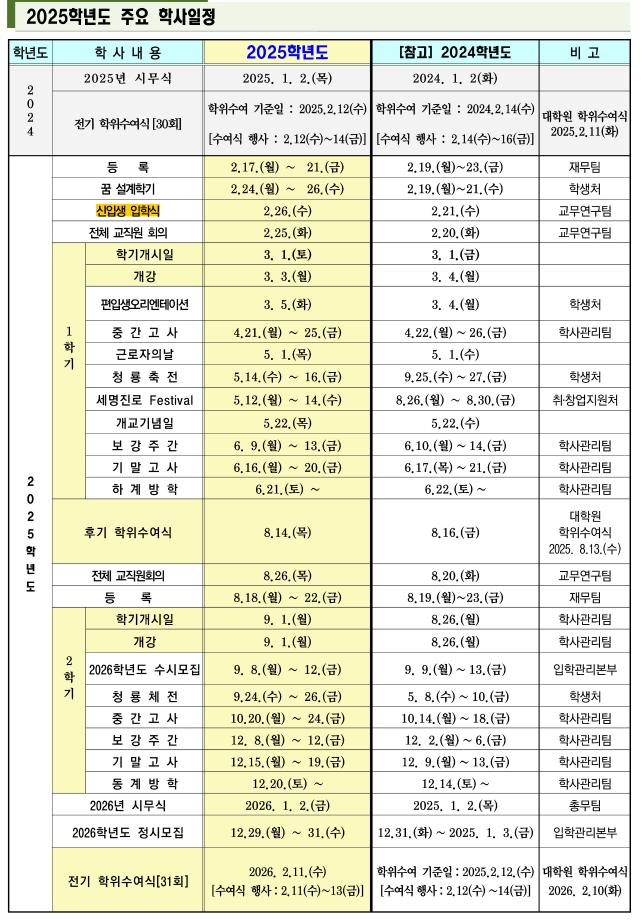 본문 시작 홈으로 학과생활 학과소개 교수소개 교과과정 학과생활 홈페이지가이드 사진게시판 공지사항 사진게시판 전공자료실 동아리 학과행사 사진게시판 페이스북 트위터 프린트 [교무처] 2025학년도 학사일정 산업디자인학과 862 2025-07-14 목록 이전[취창업처] 2025년 알쓸신잡 07월 1주차 다음 [취창업처] 2025년 알쓸신잡 07월 3주차 담당부서 : 산업디자인학과 담당자 : - 연락처 : 043-649-1436 최종수정일 : 2024-10-26 만족도조사 만족도 조사 이 페이지에서 제공하는 정보에 대하여 만족하시나요? 매우만족 만족 보통 불만족 매우불만족