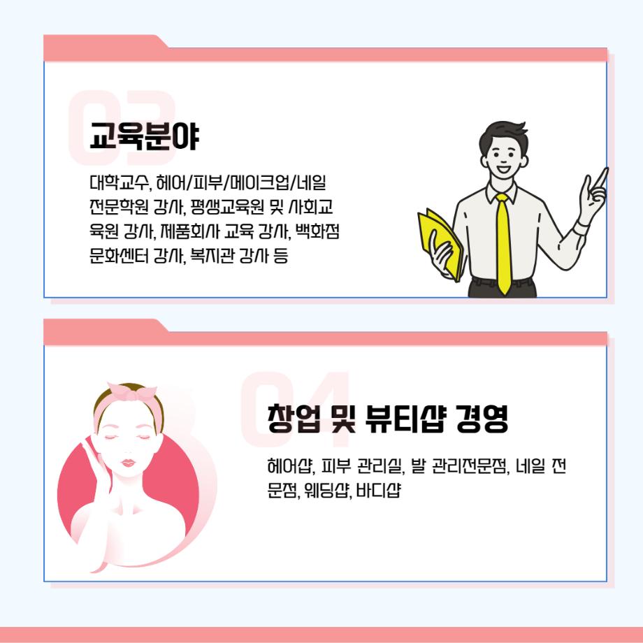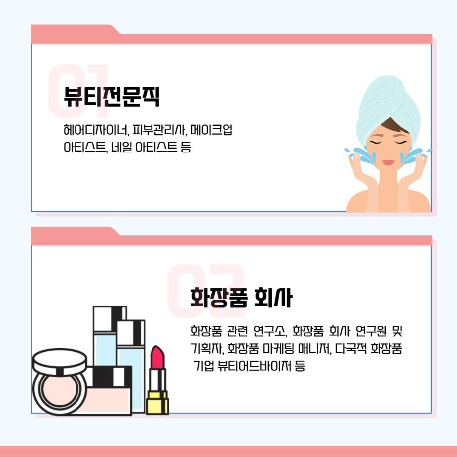 본문 시작 홈으로 커뮤니티 학과소개 교수소개 학과과정 커뮤니티 대학원 홈페이지가이드 포토갤러리 공지사항 채용정보 포토갤러리 Youtube 바로가기 Instargram 바로가기 Blog 바로가기 Facebook 바로가기 포토갤러리 페이스북 트위터 프린트 뷰티케어학 전공 졸업 후 진로 뷰티케어학 2357 2022-01-24 뷰티케어학부 졸업 후 진로 안내 입니다! 목록 이전🌹JUNO 현장실습🌹 다음 세명대학교 뷰티케어학과 졸업시 미용사 자격증/면허증 취득 가능!!