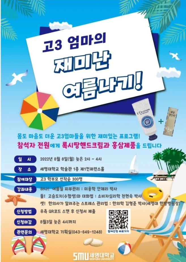 본문 시작 홈으로 커뮤니티 학과소개 교수소개 학과과정 커뮤니티 대학원 홈페이지가이드 포토갤러리 공지사항 채용정보 포토갤러리 Youtube 바로가기 Instargram 바로가기 Blog 바로가기 Facebook 바로가기 포토갤러리 페이스북 트위터 프린트 수험생 학부모의 재미난 여름나기 뷰티케어학 2599 2022-08-11 뷰티케어학과 안채리 교수는 '여름철 피부관리'에 대해 특강을 진행하였습니다. 우리 젊으신 총장님! 멋짐뿜뿜 ~ 입학처장님의 워딩 좋으신 강연과 명의이자 한의학과 교수님의 위트 넘치는 명강의👍가 있었습니다!!^^ 일시 : 08월 08일(월) 14~16시 장소 : 세명대학교 학술관 컨퍼런스홀 목록 이전시그니처 프로그램을 위한 학과 홍보 유튜브 동영상 촬영 다음 배화여자고등학교 입시홍보