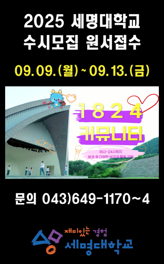 본문 시작 홈으로 커뮤니티 학과소개 교수소개 학과과정 커뮤니티 대학원 홈페이지가이드 포토갤러리 공지사항 채용정보 포토갤러리 Youtube 바로가기 Instargram 바로가기 Blog 바로가기 Facebook 바로가기 포토갤러리 페이스북 트위터 프린트 09.09 ~ 09.13 세명대학교 수시모집 기긴입니다. 뷰티케어학과 1947 2024-08-26 벌써 한 해의 절반이 넘게 지나가고 더위가 조금씩 가시니 또 다시 입시철이 다가왔네요! 세명대학교만의 특색있는 활동들과 원서접수에 관하여 알아볼까요?? 목록 이전뷰티케어학과 22학번 이수연학생이 미용사(네일)국가자격증 취득을 하였습니다~ 다음 예비smu뷰티케어학과 학생들 반가워요!!