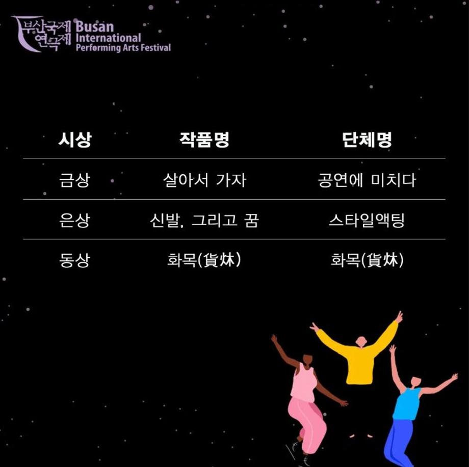 본문 시작 홈으로 커뮤니티 학과소개 입학정보 교수소개 학과과정 커뮤니티 공연예매 안내 홈페이지가이드 포토갤러리 공지사항 포토갤러리 작품DB 동아리 학사일정 학생회 포토갤러리 페이스북 트위터 프린트 🏆2022년 제19회 부산국제연극제 청년연극제 금상수상🏆 연기예술학과 2851 2022-06-22 🏆2022년 제19회 부산국제연극제 청년연극제 금상수상🏆 🌺이번 청년연극제 참가작인 [살아서 가자]는 신입생들과 2학년 학생들이 액션신과 군무 등 함께 호흡을 맞춰 즐겁게 연습했던 작품으로 금상까지 수상하게 되었습니다👥🎉🎉 열심히 연습하고 노력한 '살아서 가자' 팀에게 박수를 보냅니다👏👏 또한 이번 청년연극제에서 수상 받을 수 있도록 유튜브도 찾아보고 응원해준 모든 사람들에게 감사드립니다! 🔥 축하드립니다 🔥 목록 이전🏫[커버 COVER] 2022 High School Musical 세명대학교 연기예술학과 2022 무용동아리 프로젝트 화란&ATTENTION🏫 이전제 82회 세명대학교 연기예술학과 정기공연 중급연기 | 발표 <팔레트> 스틸컷🎨📸 담당부서 : 연기예술학과 담당자 : - 연락처 : 043-649-1733 최종수정일 : 2024-10-26 만족도조사 만족도 조사 이 페이지에서 제공하는 정보에 대하여 만족하시나요? 매우만족 만족 보통 불만족 매우불만족